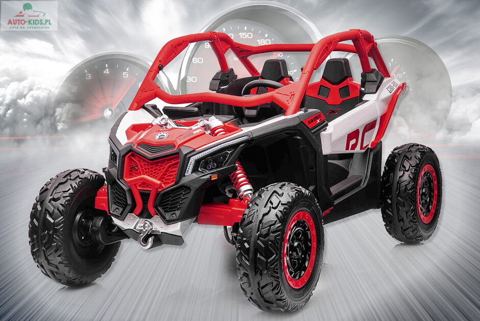 3-krotny zwycięzca Rajdu Dakar Can Am Maverick X RS Turbo RR w wersji na akumulator dla dzieci! Najmocniejsze silniki 24V 4x 200W (800W!!!) i podwójny akumulator 2x 24V10AH (20Ah!!!) + szybka ładowarka 24V – to najbogatsza wersja premium wyposażenia dostępna na rynku!