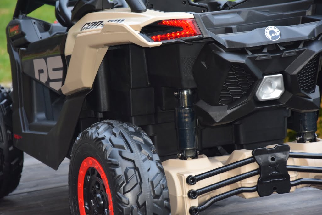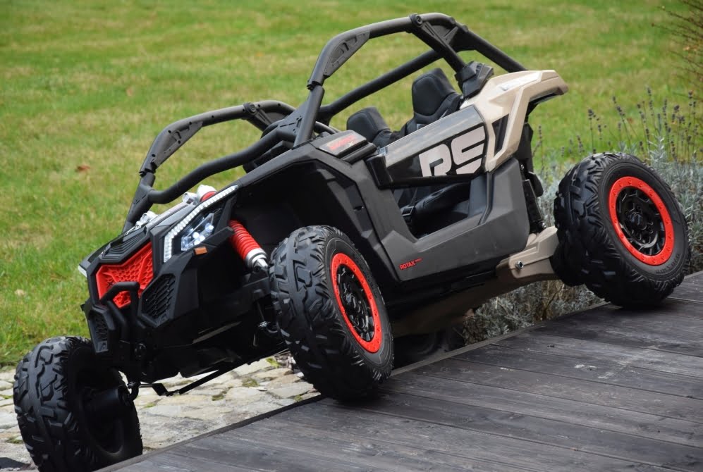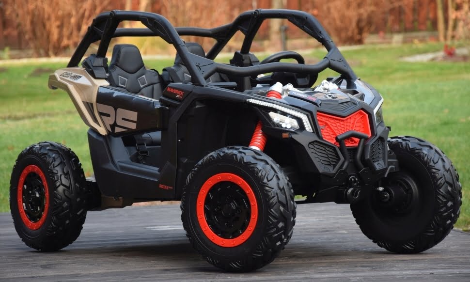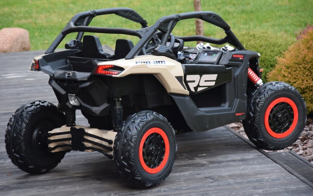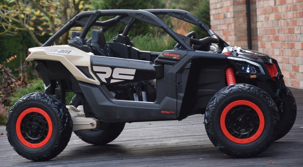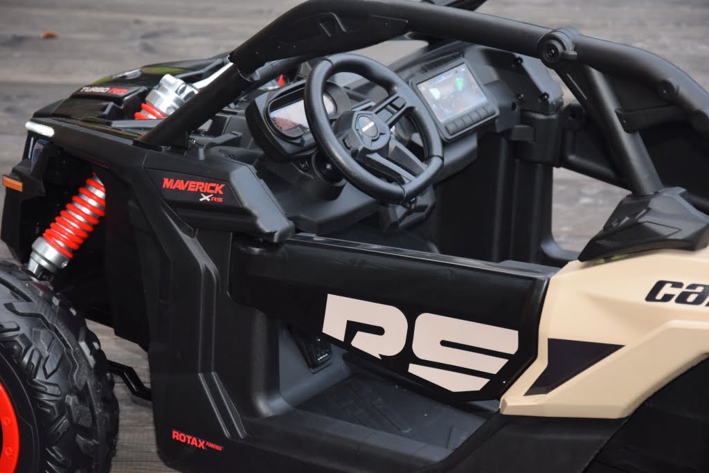 Can Am Maverick z napędem 4×4 o mocy 800W (!) z podwójnym akumulatorem 24V o pojemności 20Ah (!) w czarnym kolorze z beżowymi elementami – topowa wersja X RS: