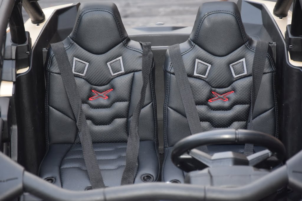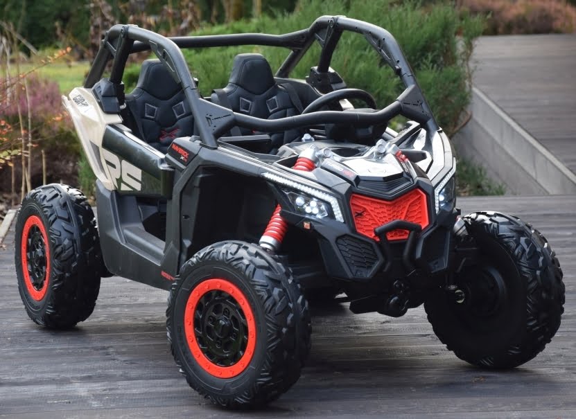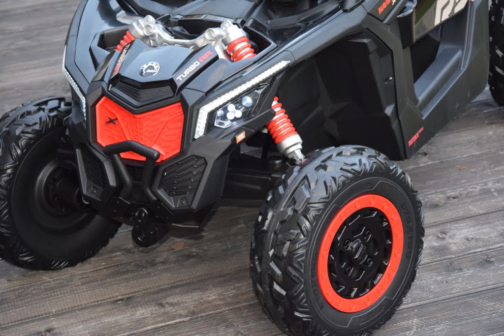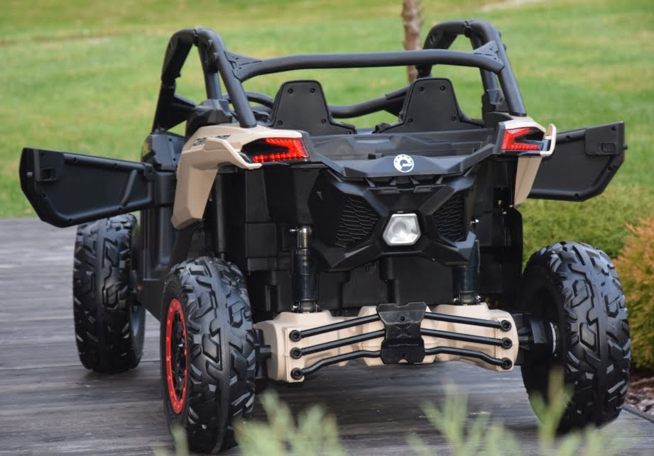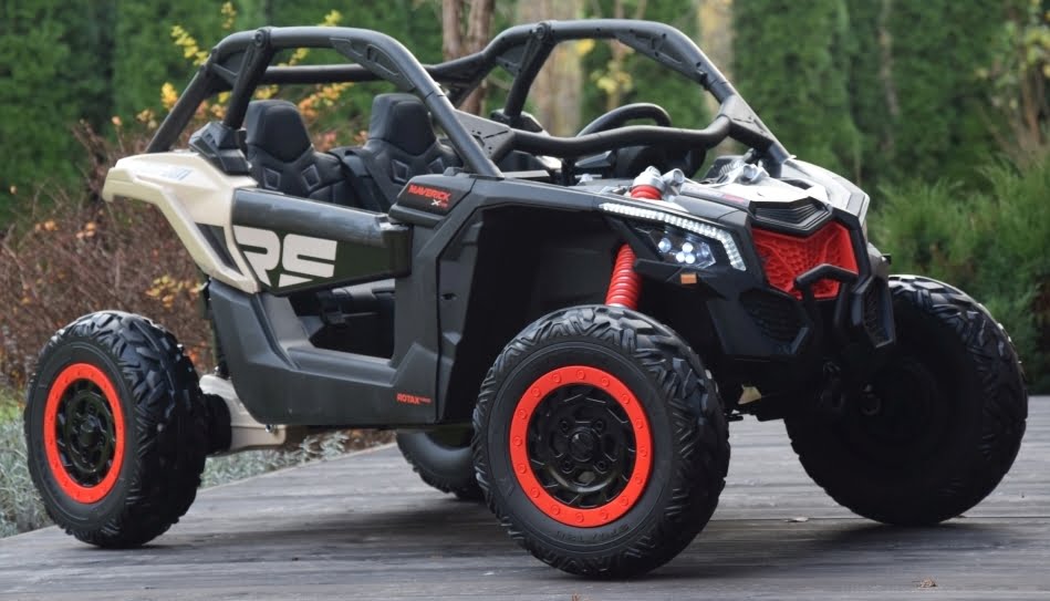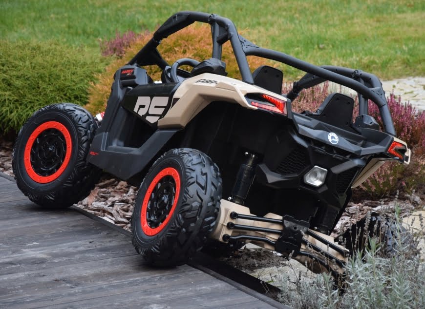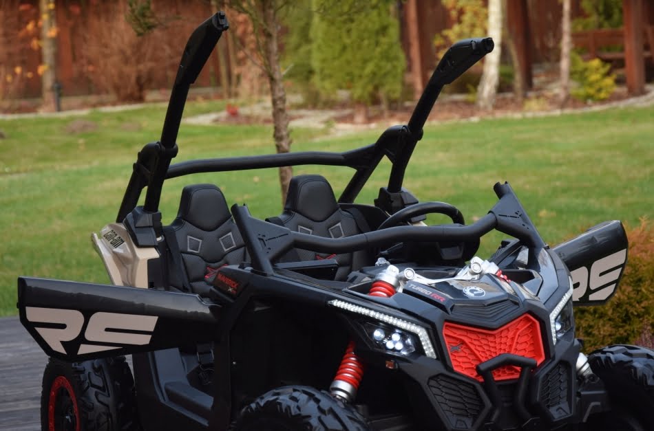 Can Am Maverick z napędem 4×4 o mocy 800W (!) z podwójnym akumulatorem 24V o pojemności 20Ah (!) w czarnym kolorze z beżowymi elementami – topowa wersja X RS:
