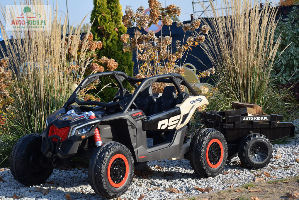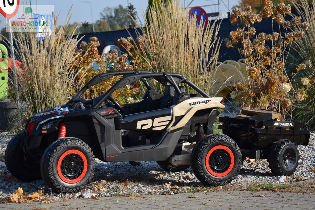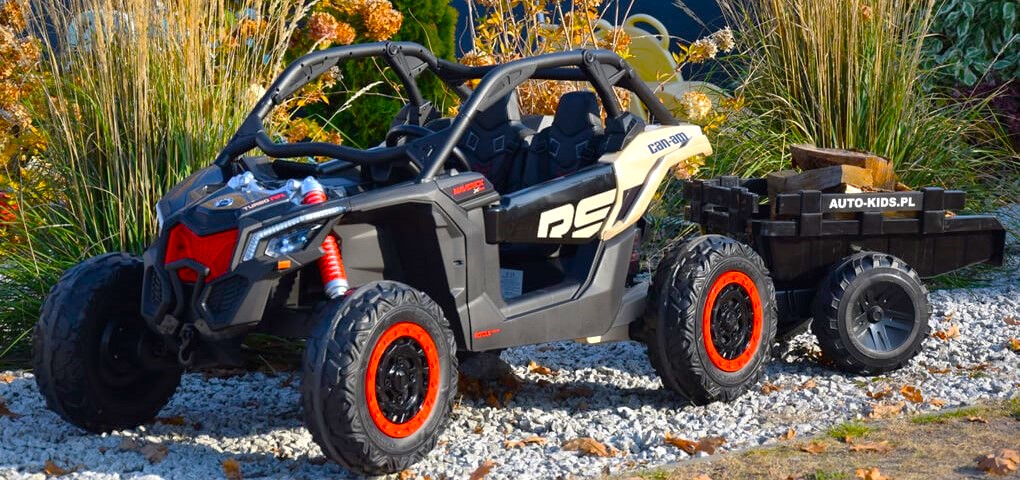 Can Am Maverick z napędem 4×4 o mocy 800W (!) z podwójnym akumulatorem 24V o pojemności 20Ah (!) w wersji z przyczepką Auto-Kids: