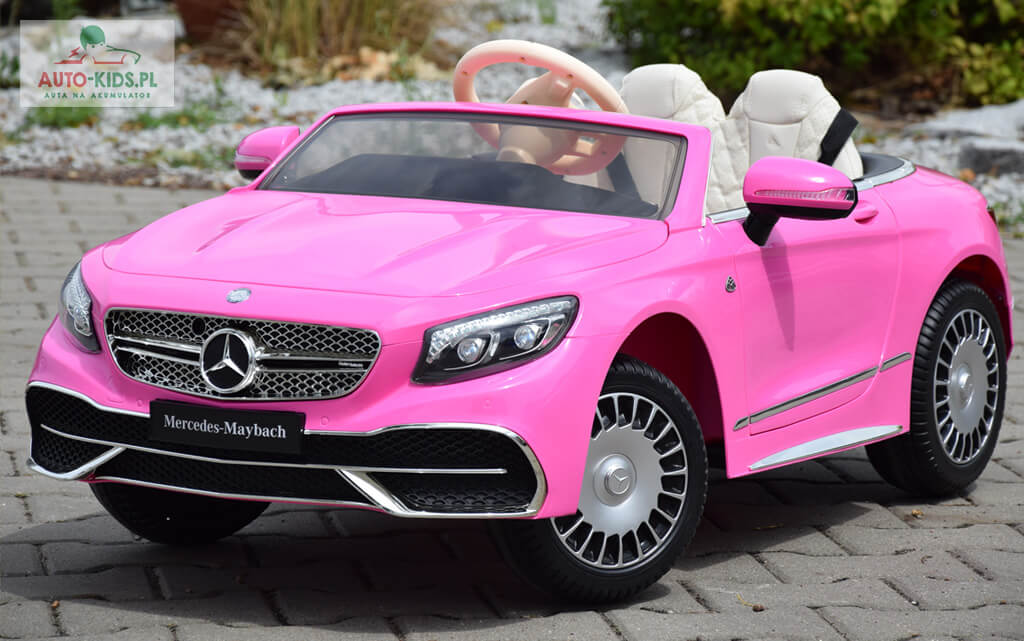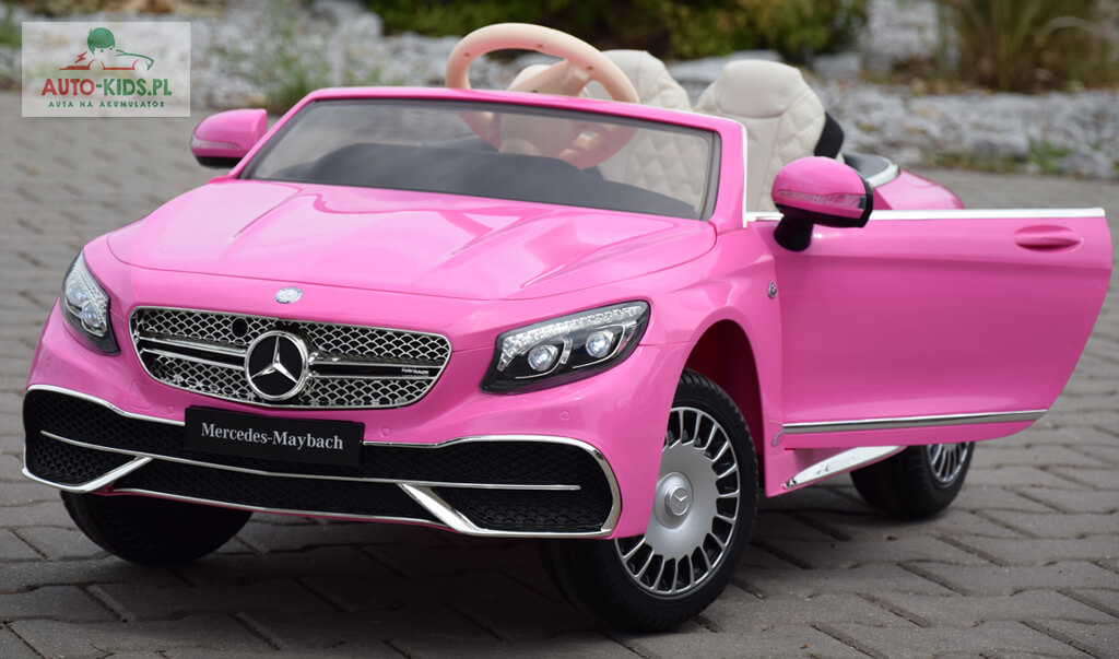 Limuzyna Mercedes S650 Maybach to najnowszy model, najmocniejsza wersja z napędem 2×45 oraz świetne wyposażenie m.in: skórzany fotel, przełącznik napędów, piękna dziewczęca różowa karoseria. Powiększony akumulator 12V 10Ah – to dłuższy czas jazdy na jednym ładowaniu!