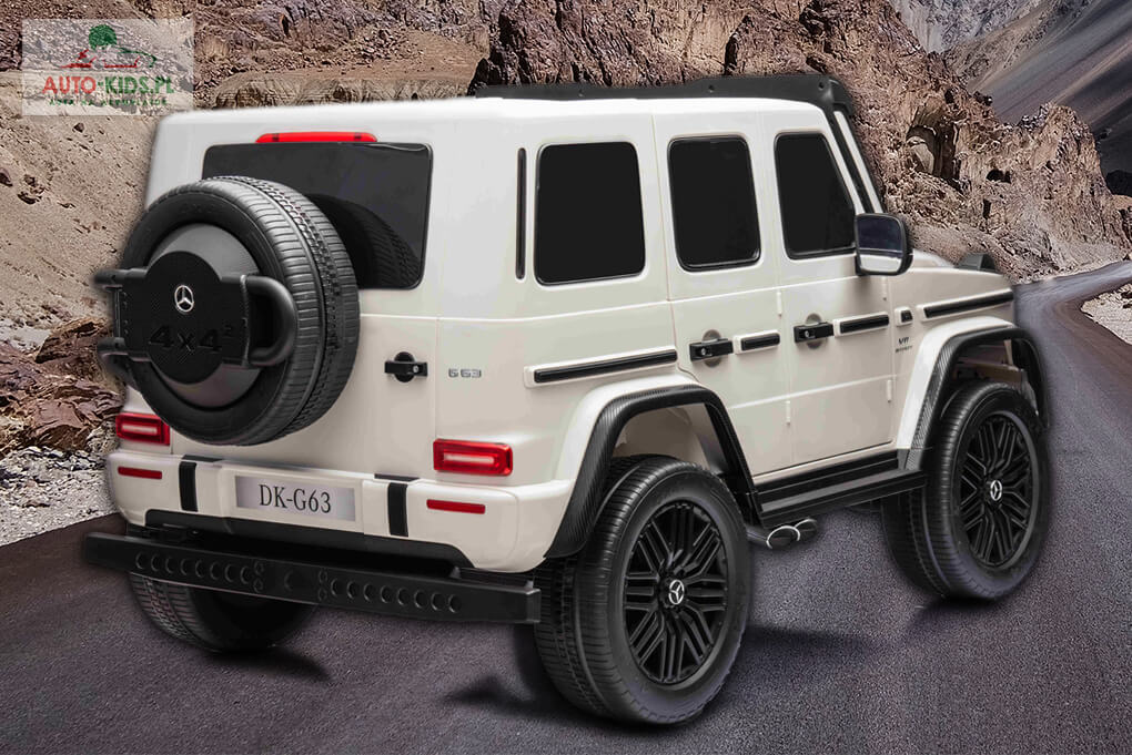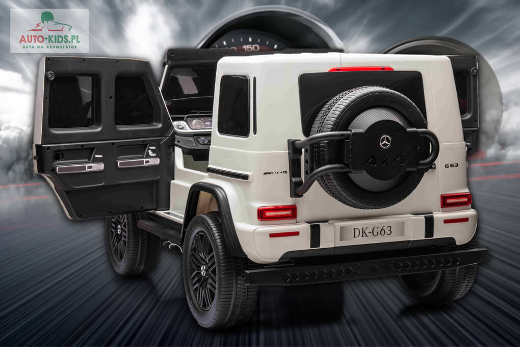 Najnowszy 2-osobowy Mercedes AMG G63 z mocnymi cichymi silnikami 2x280W (560W!), czyli lakierowana legenda Mercedes-Benz na licencji! w najmocniejszej na rynku wersji z dwoma akumulatorami 24V 10Ah (razem 20Ah) + szybka ładowarka 24V!