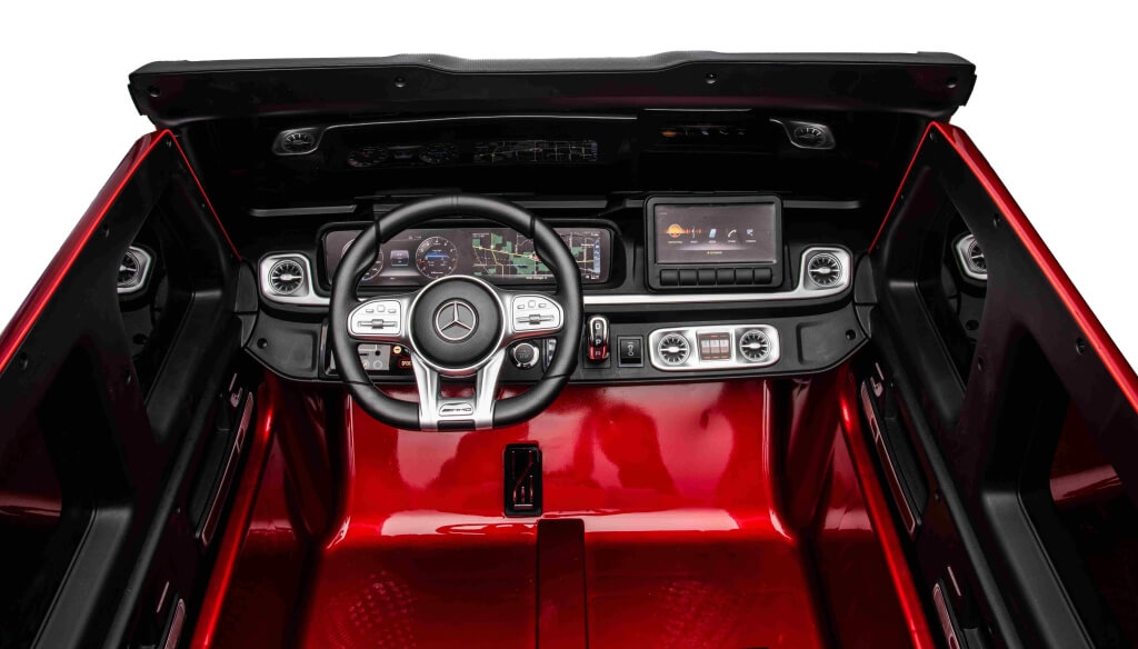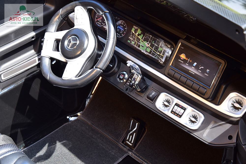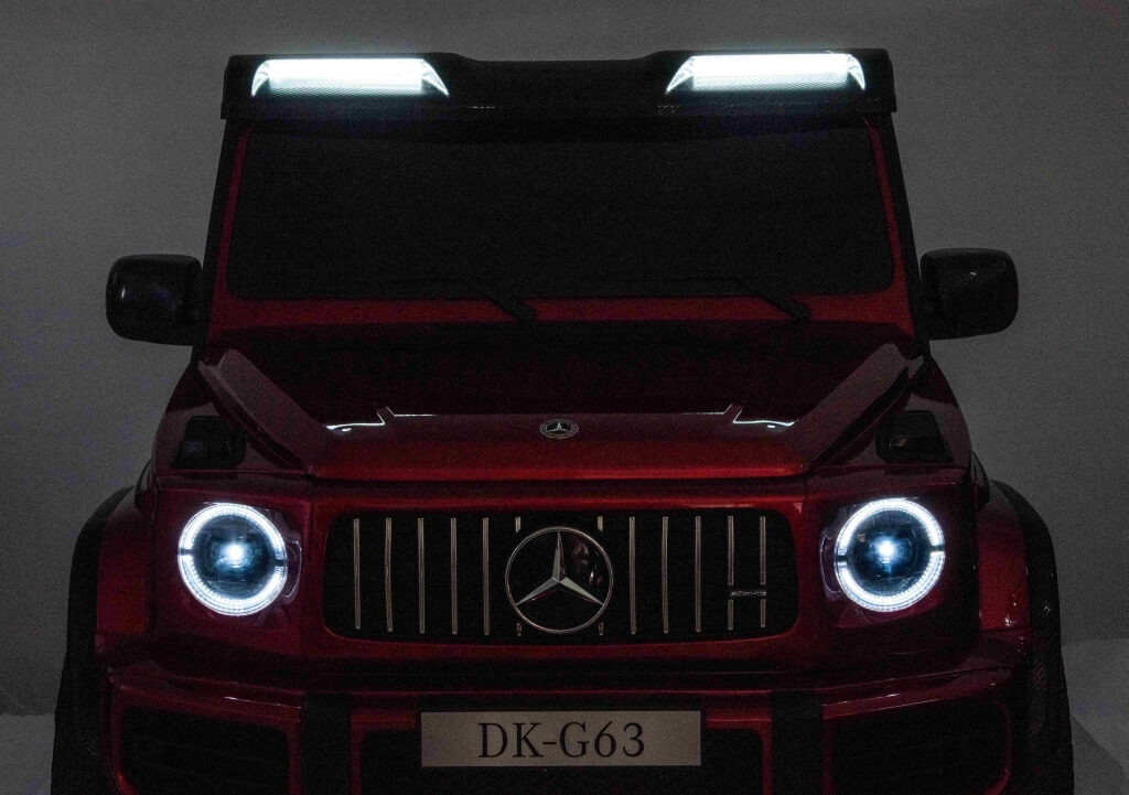 Najnowszy 2-osobowy Mercedes AMG G63 z mega mocnym napędem 4×4 24V, czyli lakierowana legenda Mercedes-Benz na licencji! w najmocniejszej na rynku wersji z dwoma akumulatorami 24V 10Ah (razem 20Ah) i czterema mocnymi silnikami 200W + szybka ładowarka 24V! Nowy Mercedes-AMG G 63 jest harmonijnym połączeniem elegancji i sportowego charakteru – to czysta moc i wyrafinowanie w ponadczasowym wydaniu! Przestronne wnętrze nowego Mercedesa na akumulator dla dzieci zostało zaprojektowane z myślą o doskonałych wrażeniach z jazdy. Gustowne wykończenie najdrobniejszych elementów, w tym dywaniki z logo AMG, podkreślają doskonałą, klasyczną stylistykę i wygodę użytkowania.