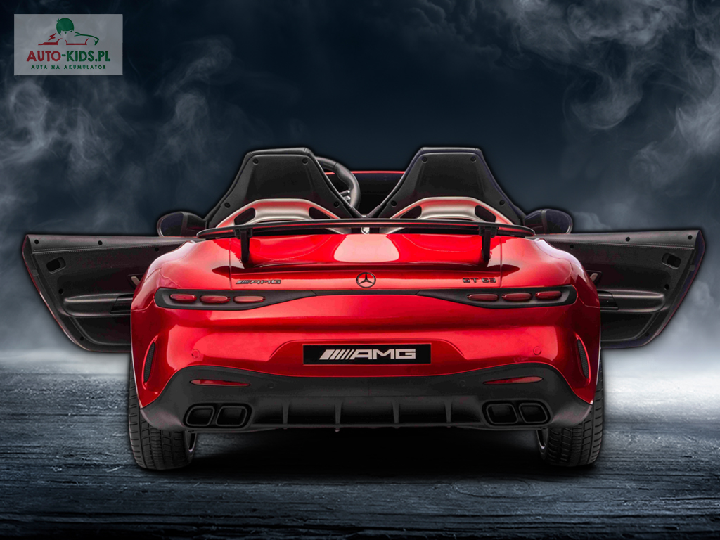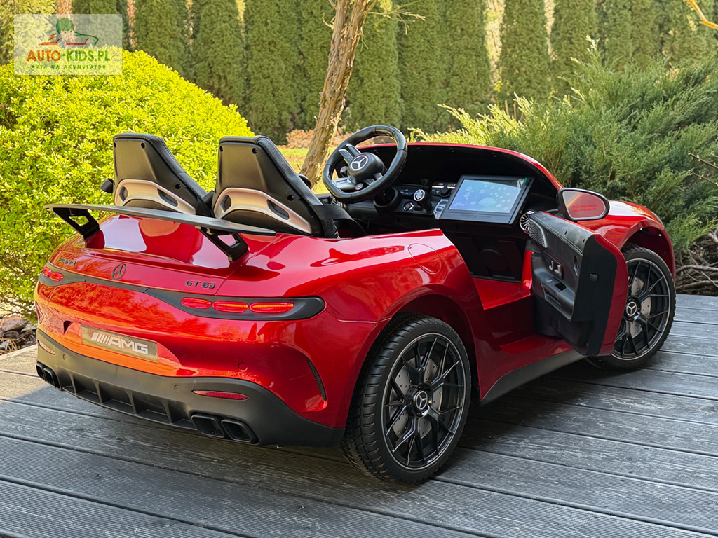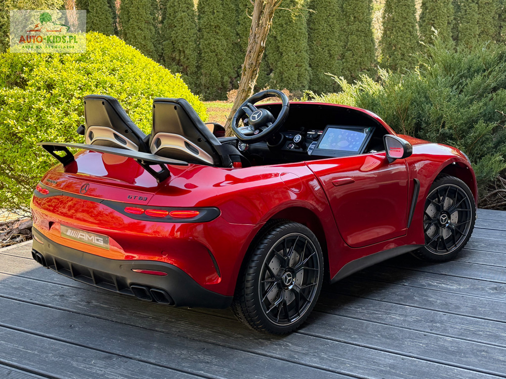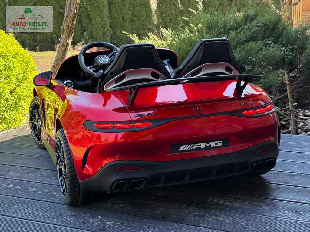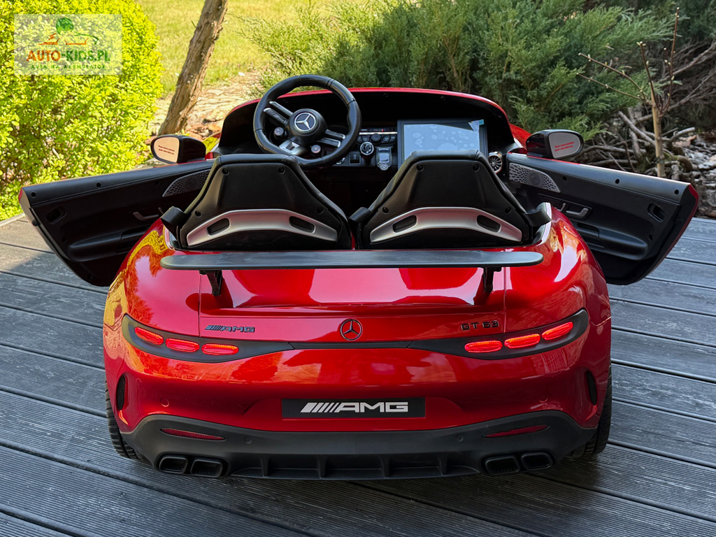 Najnowsze licencjonowane, sportowy 2-osobowy Mercedes AMG GT63 z dotykowym panelem MP4 i z najmocniejszymi silnikami 4x200W (800W!) i powiększony akumulator 24V 14Ah! Sportowy styl, eleganckie wykończenie w najbogatszej Wersji Premium!