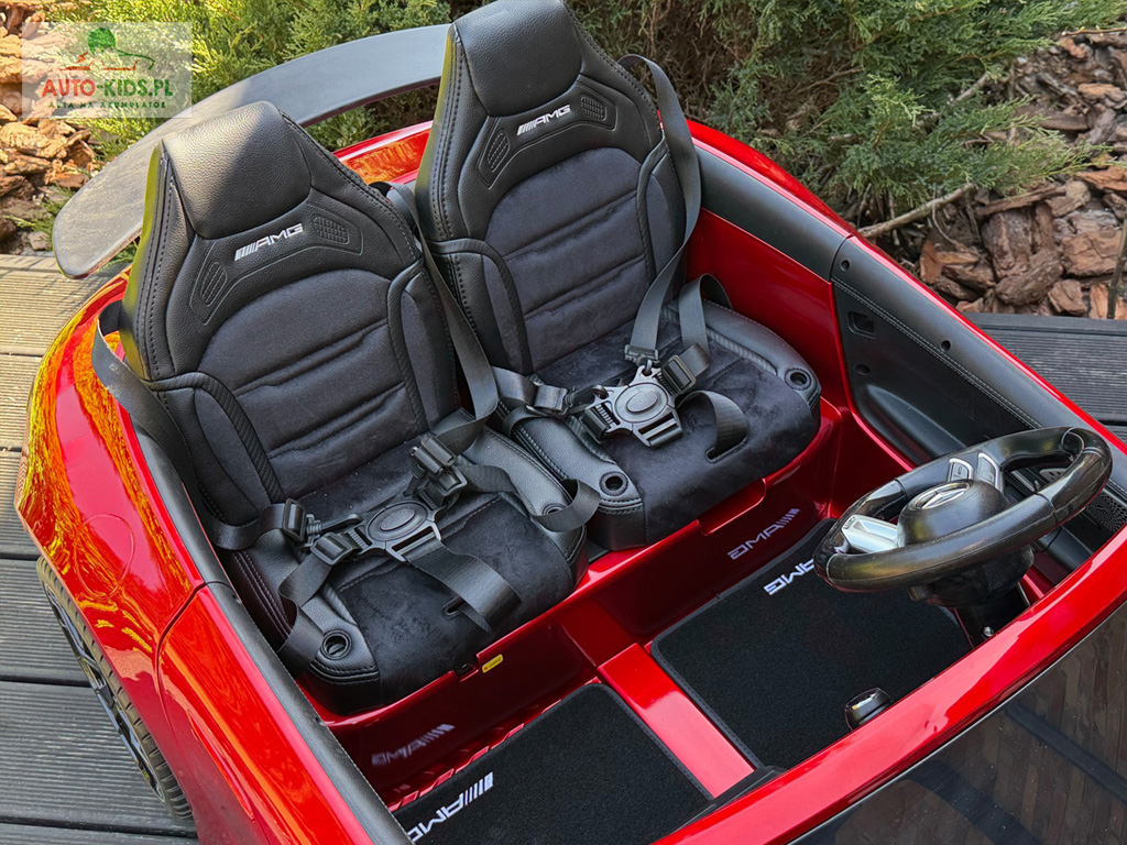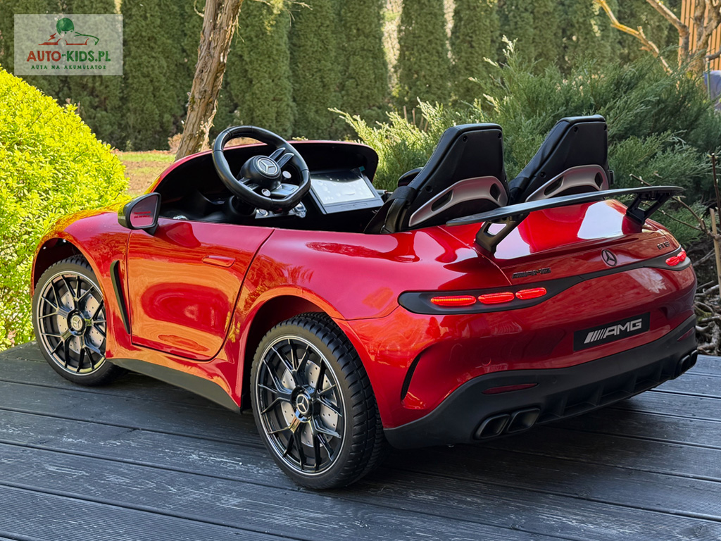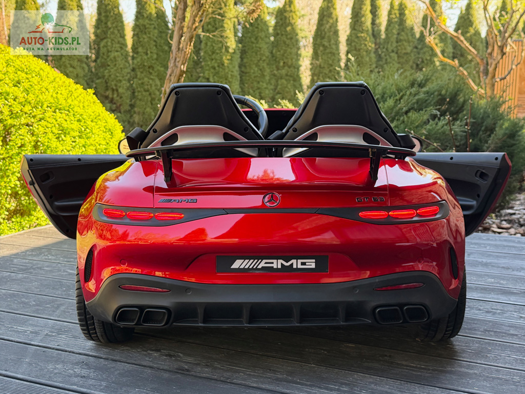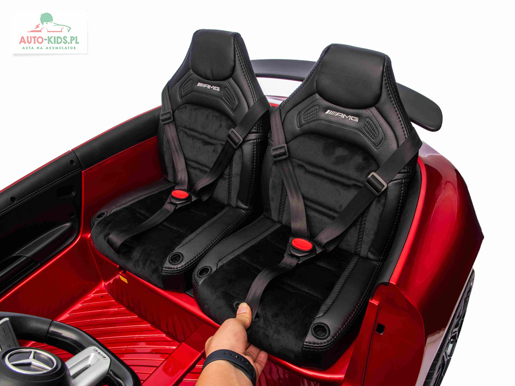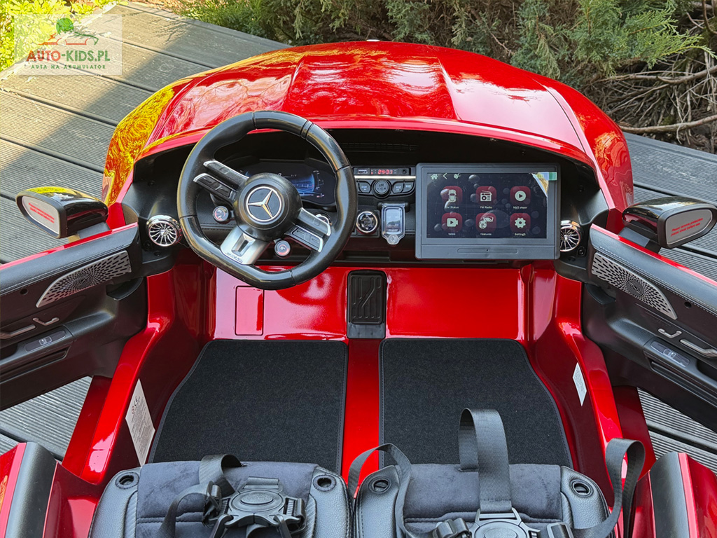 Najnowsze licencjonowane, sportowy 2-osobowy Mercedes AMG GT63 z dotykowym panelem MP4 i z najmocniejszymi silnikami 4x200W (800W!) i powiększony akumulator 24V 14Ah! Sportowy styl, eleganckie wykończenie w najbogatszej Wersji Premium!