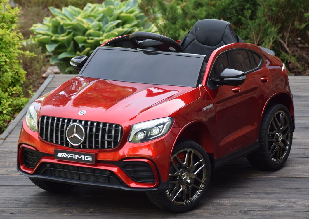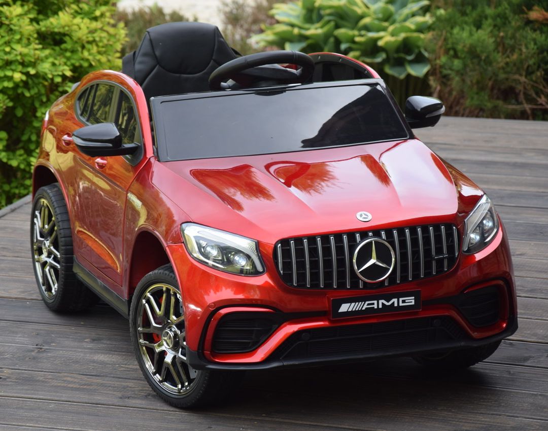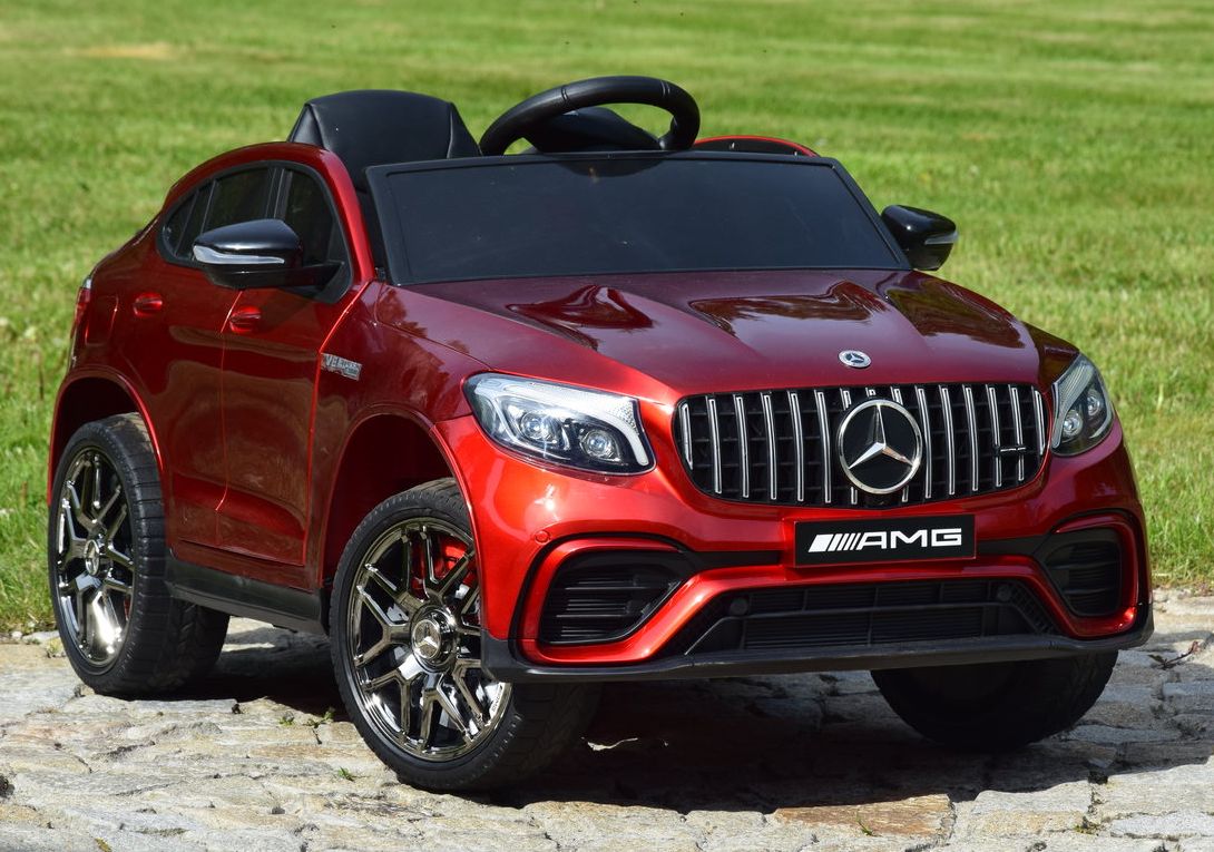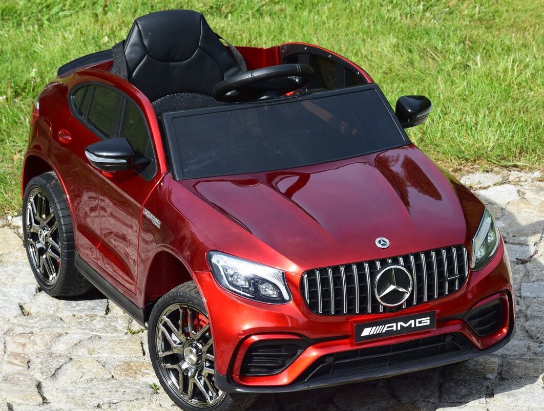 Jednoosobowy Mercedes GLC 63S najnowszy model, najmocniejsza wersja z napędem 4×4 (4 silniki po 45W każdy!) oraz świetne wyposażenie m.in: skórzany fotel, przełącznik napędów, piękna lakierowana bordowa karoseria.
