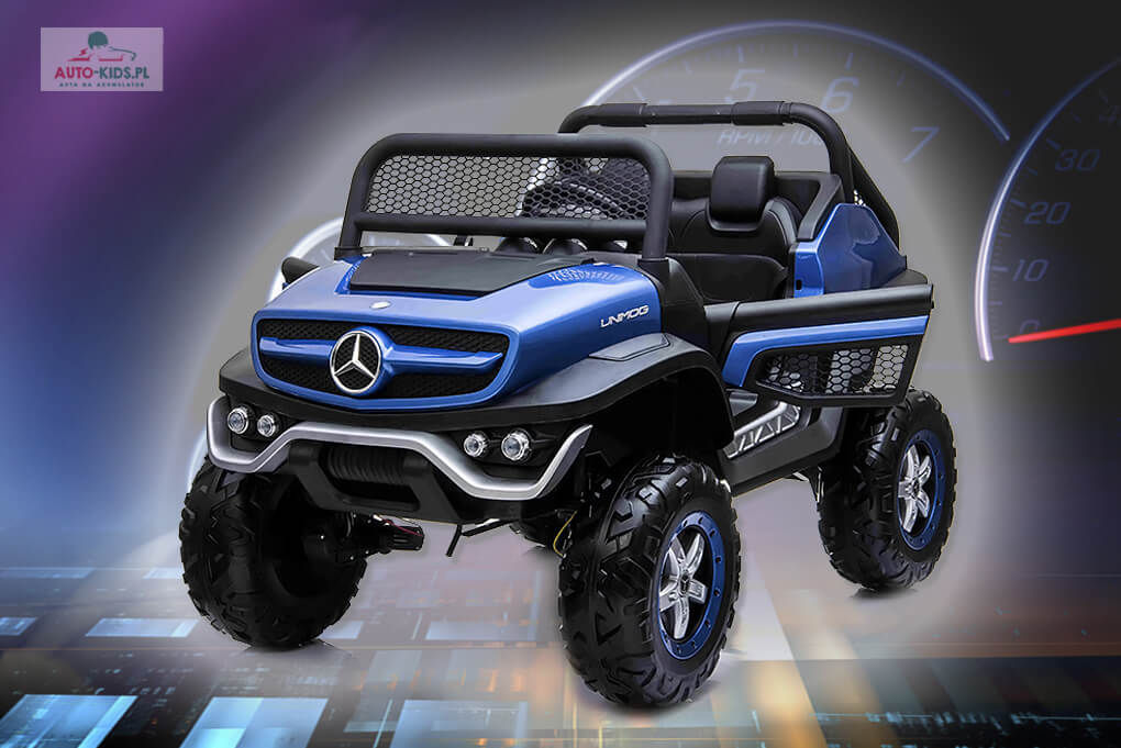 Mercedes Unimog 24V 2-os. Wersja Premium Mega Moc 4x120W (480W!) 24V10Ah! NIEBIESKI LAKIEROWANY