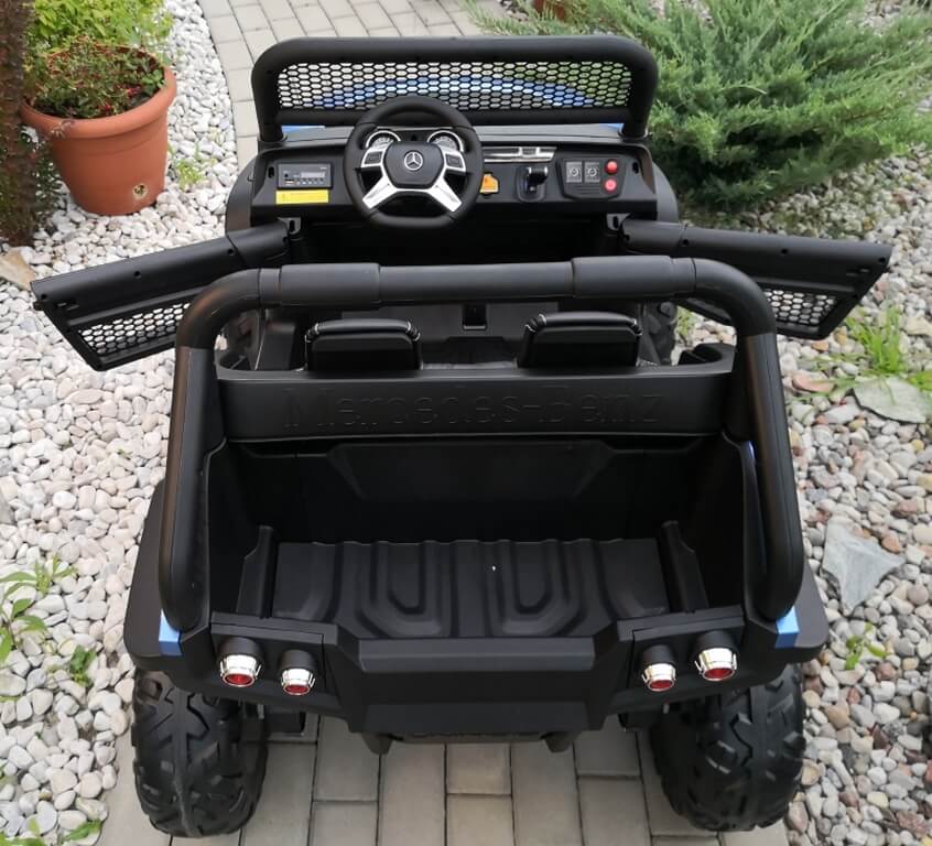 Terenowy buggy na licencji Mercedesa w najmocniejszej na rynku Wersji Premium z powiększonym akumulatorem 24V10Ah (+szybka ładowarka 24V) i czterema mocnymi silnikami po 120W każdy! To prawie 500W łącznej mocy i wydłużony czas jazdy! Piękno i renoma marki Mercedes-Benz w terenowej odsłonie.