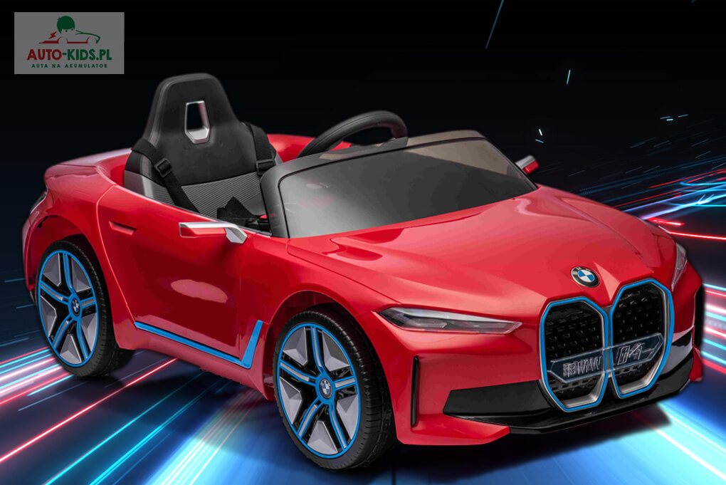 Najnowsze BMW i4 PREMIUM napęd 4×4! 12V 9Ah! EVA CZERWONY lakierowany