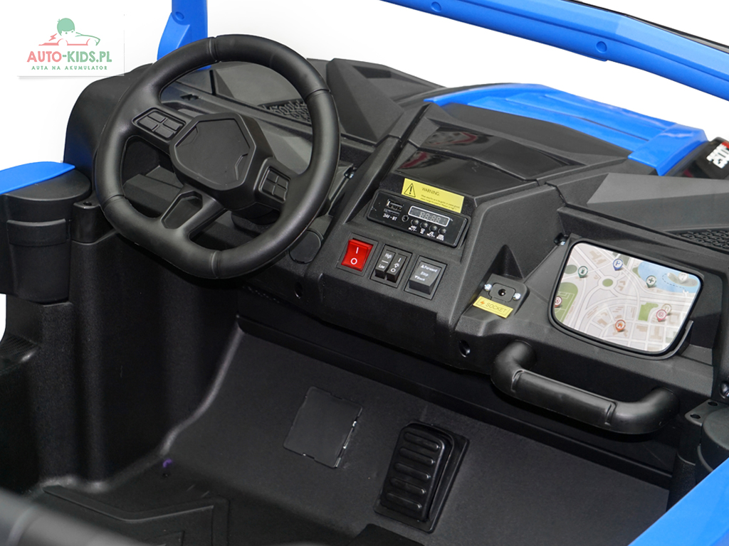 Jedyna w swoim rodzaju Terenowa Wyścigówka Buggy UTV Racing w wersji na akumulator dla dzieci! Najmocniejsze silniki 24V 4x 200W (800W!!!) powiększone fabrycznie akumulatory 24V 20Ah! – to najbogatsze wyposażenie w Wersji Premium Deluxe dostępne tylko u nas! Dwa regulowane fotele i najwięcej miejsca w środku!