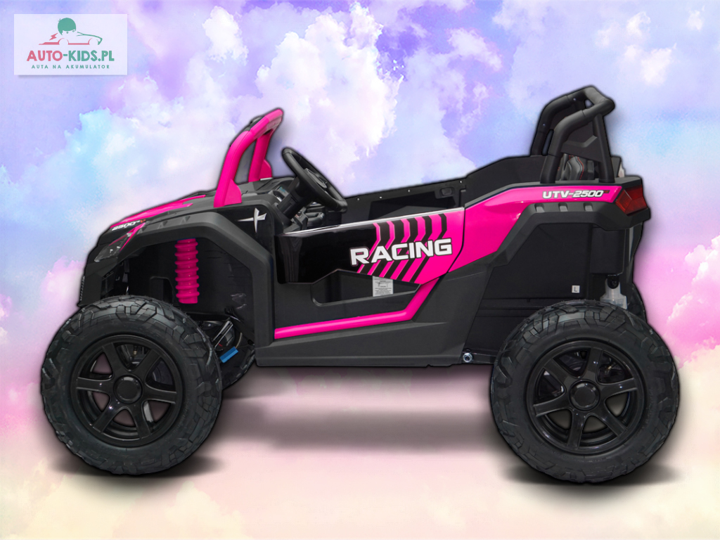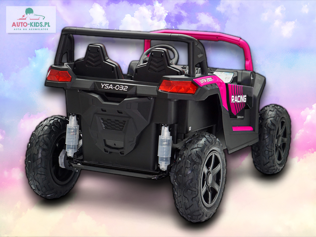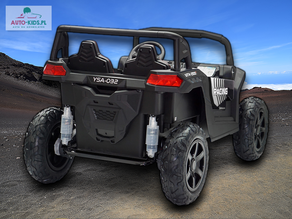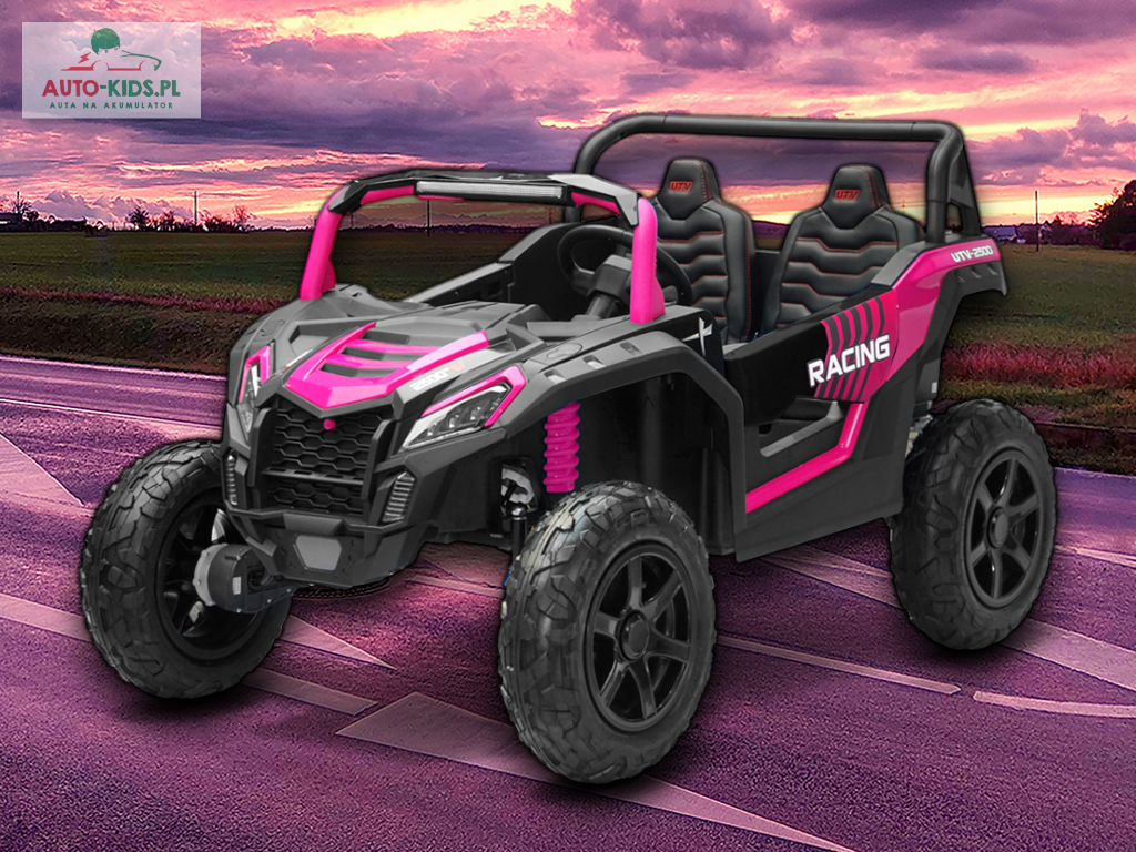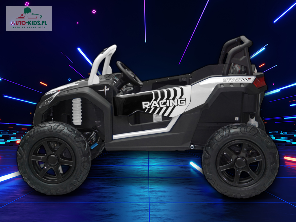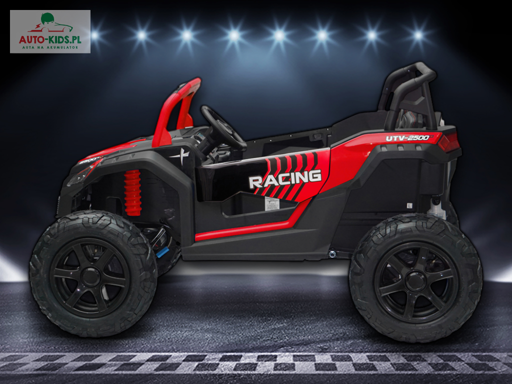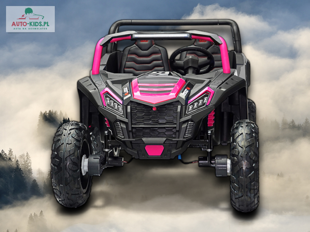 Nowy 2-osobowy terenowy Buggy UTV Racing z pompowanymi kołami, najmocniejszymi silnikami 24V 4x200W i dwa fabrycznie powiększone akumulatory 12V20Ah, dające razem 24V20Ah! Dodatkowo wzmocniona, metalowa przednia oś!