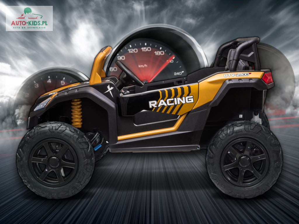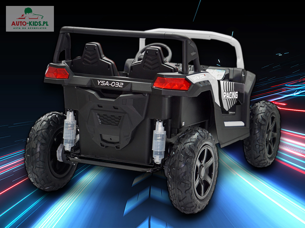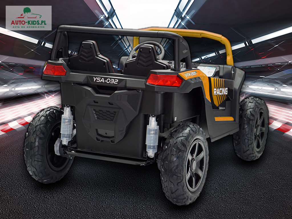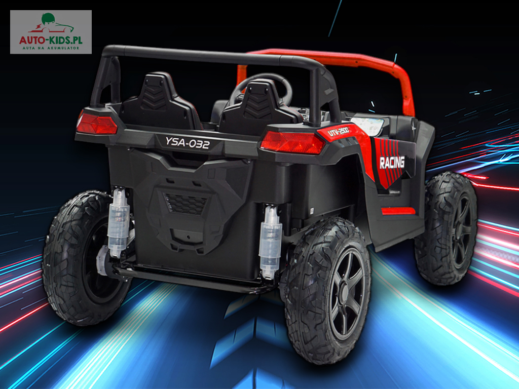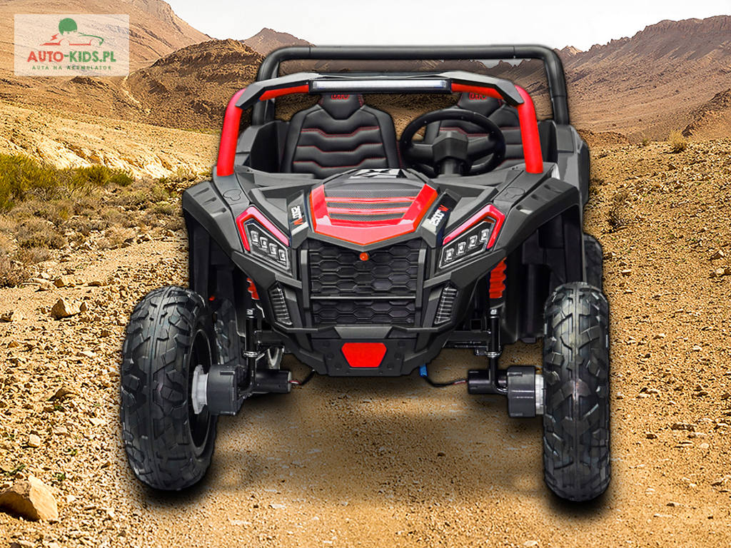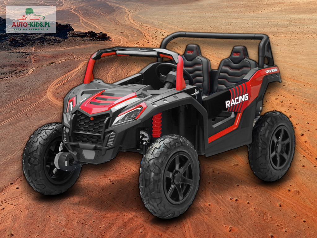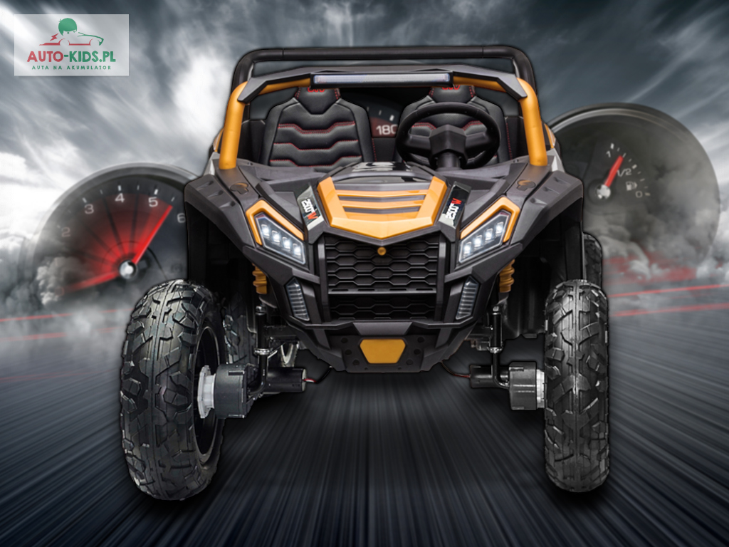 Jedyna w swoim rodzaju Terenowa Wyścigówka Buggy UTV Racing w wersji na akumulator dla dzieci! Najmocniejsze silniki 24V 4x 200W (800W!!!) i powiększone fabrycznie akumulatory 24V 20Ah! – to najbogatsze wyposażenie w Wersji Premium Deluxe dostępne tylko u nas! Dwa regulowane fotele i najwięcej miejsca w środku!