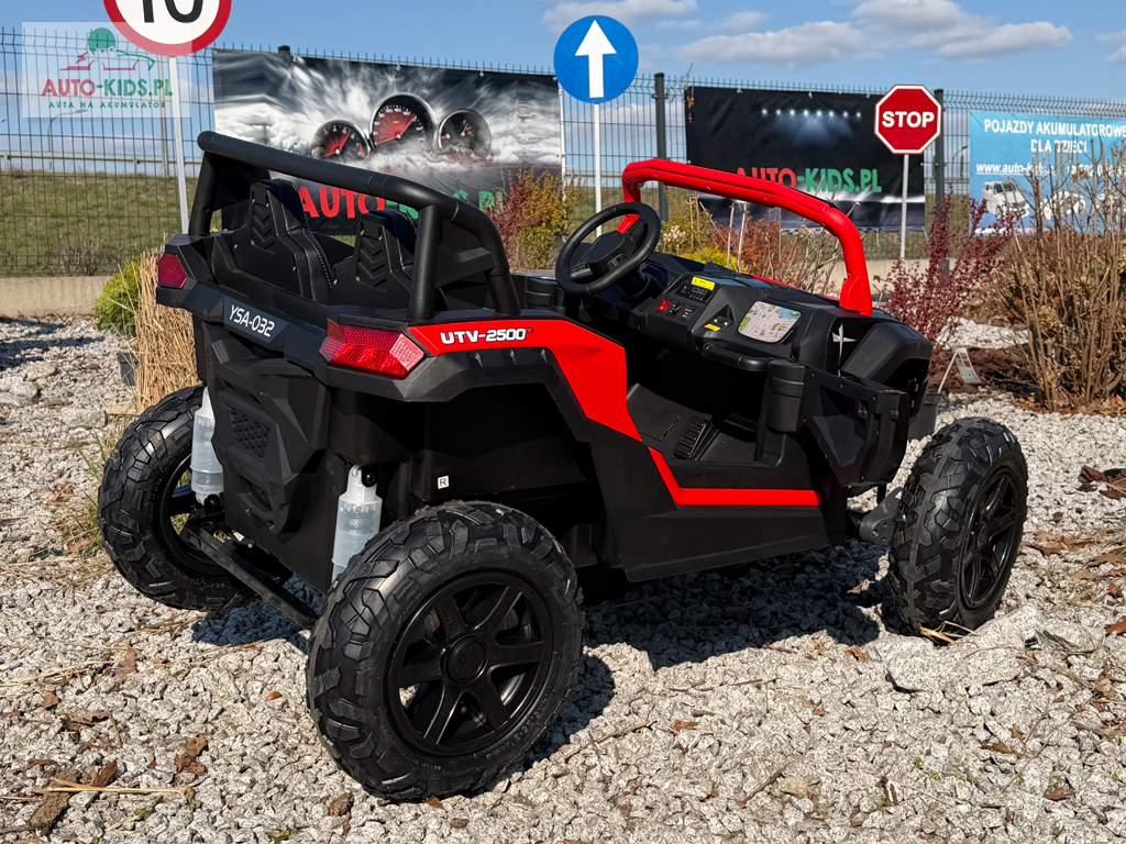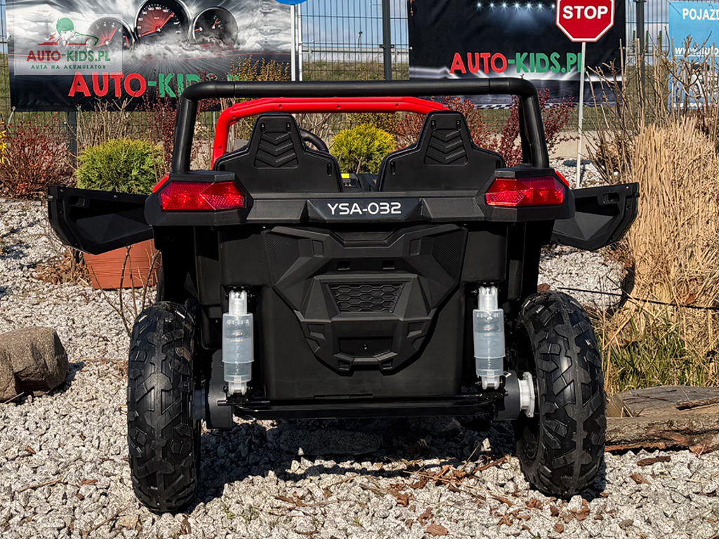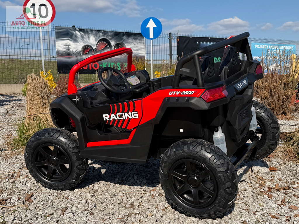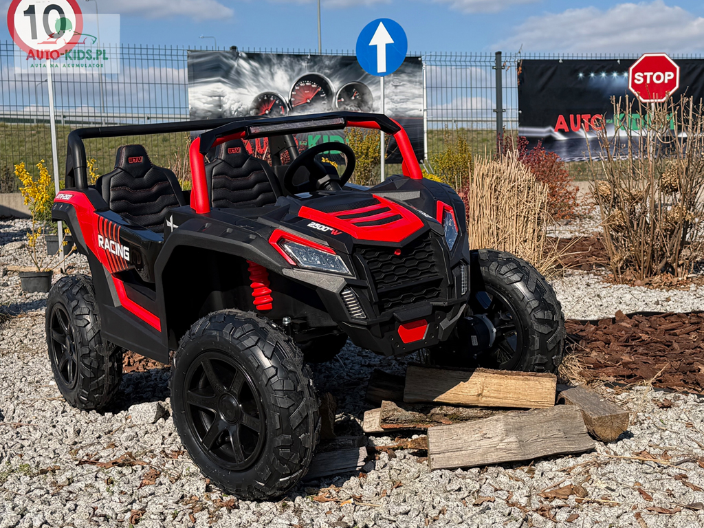 Jedyna w swoim rodzaju Terenowa Wyścigówka Buggy UTV Racing w wersji na akumulator dla dzieci! Najmocniejsze silniki 24V 4x 200W (800W!!!) i powiększone fabrycznie akumulatory 24V 20Ah! – to najbogatsze wyposażenie w Wersji Premium Deluxe dostępne tylko u nas! Dwa regulowane fotele i najwięcej miejsca w środku!