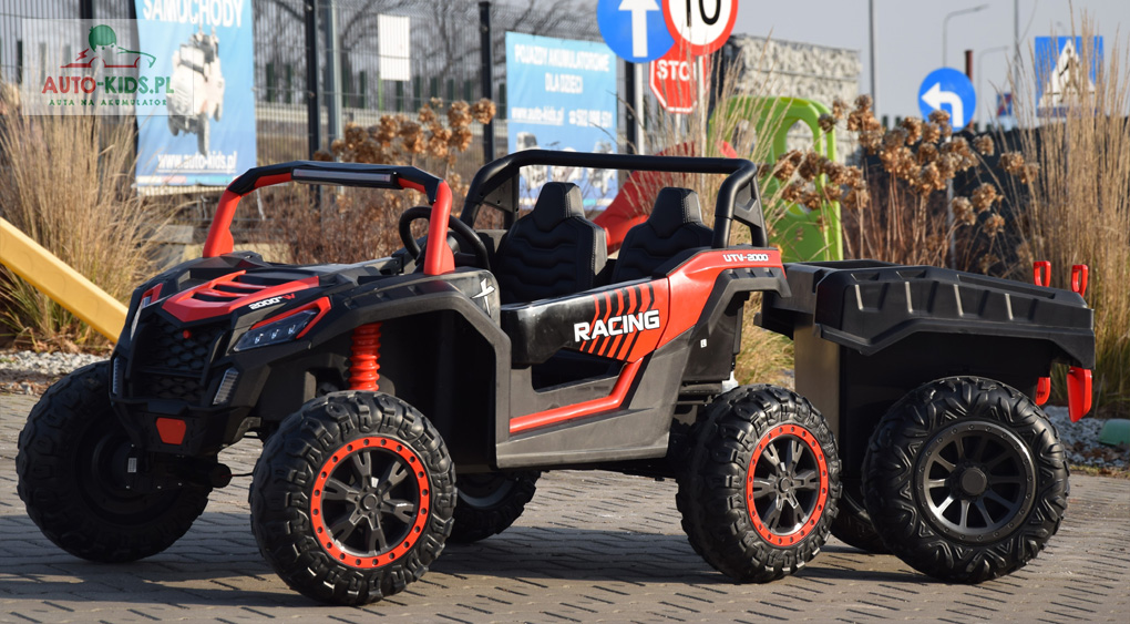 W skład zestawu wchodzi pojazd Buggy UTV Racing w wybranym kolorze z przyczepką z dodatkowym, składanym siedzeniem!