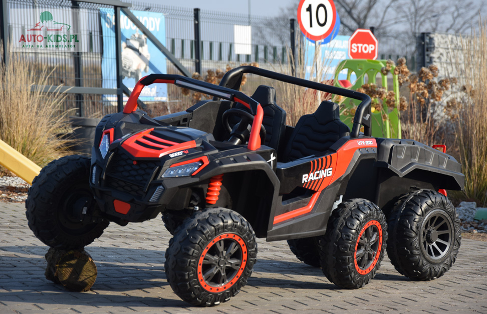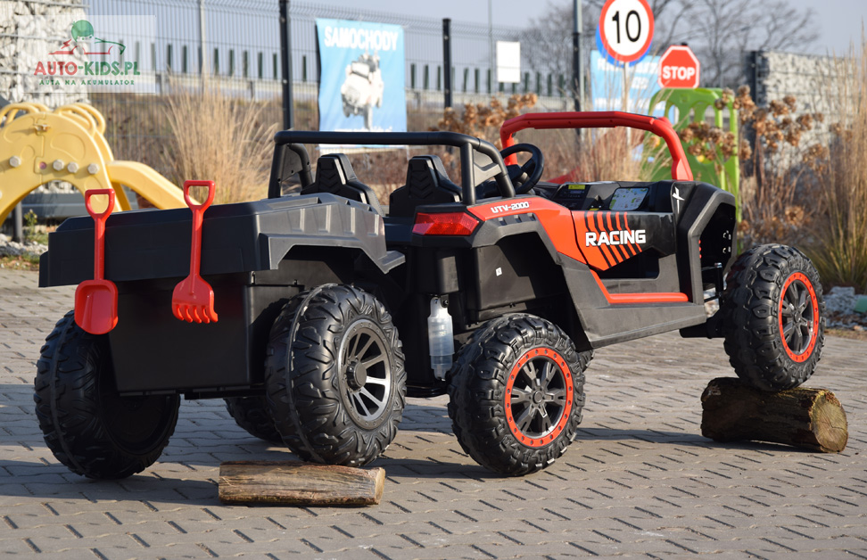 Jedyna w swoim rodzaju Terenowa Wyścigówka Buggy UTV Racing w wersji na akumulator dla dzieci! Najmocniejsze silniki 24V 4x 200W (800W!!!) i powiększony akumulator 24V 14Ah! - to najbogatsza wersja premium wyposażenia dostępna na rynku! Dwa regulowane fotele i najwięcej miejsca w środku!