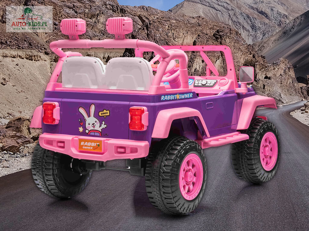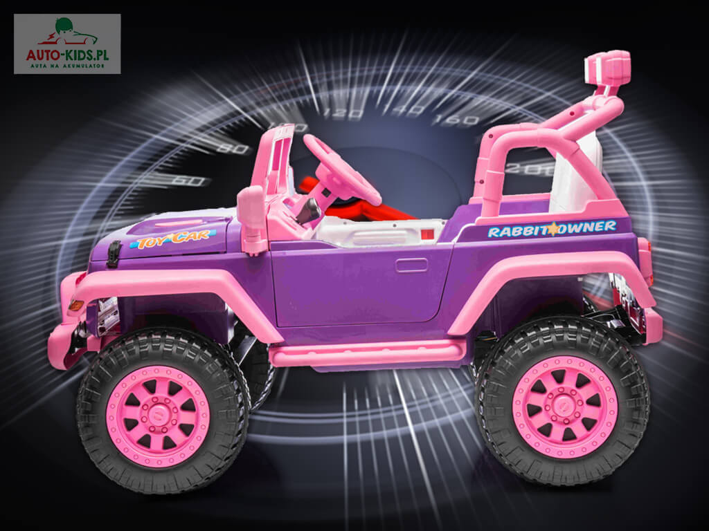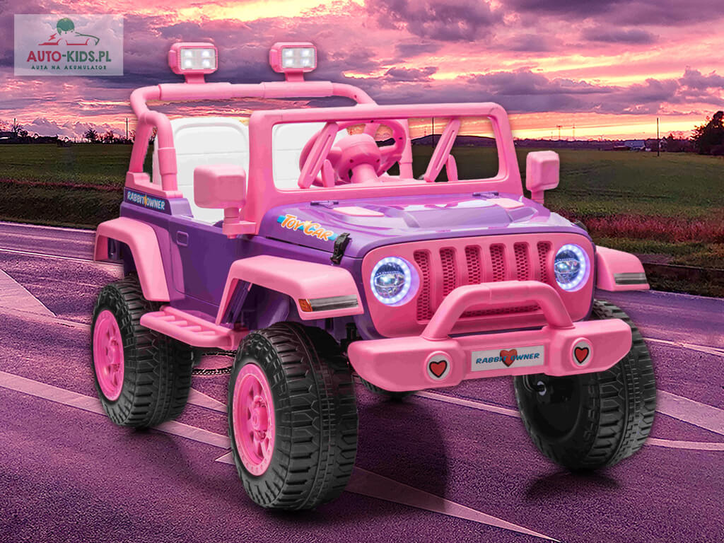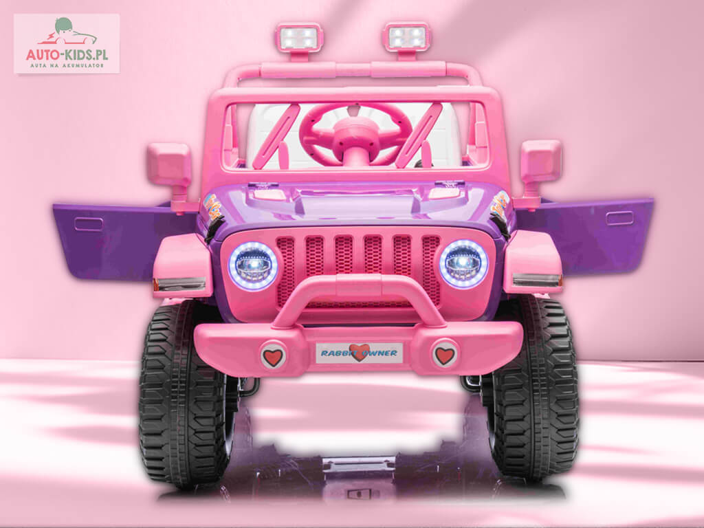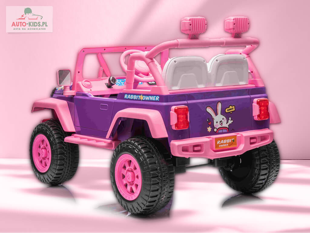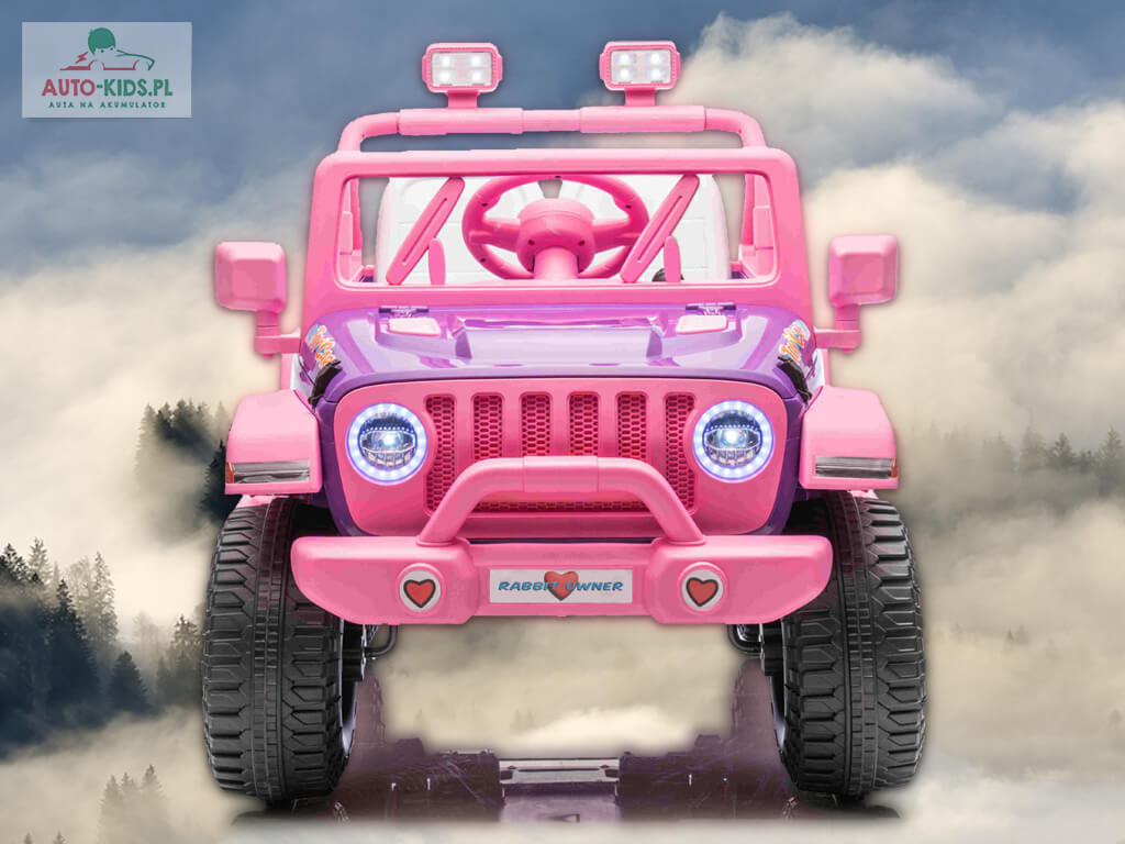 Nowość! Przepiękny dziewczęcy Jeep NEL-617 w bajkowym, króliczym różu! Dziecko poczuje się jak prawdziwa księżniczka! 🙂 Mocny napęd 4×4 24V 20000 RPM i akumulator 24V 5Ah sprawią, że młody kierowca będzie miał niezapomnianą uciechę! Jedyny w swoim rodzaju bajkowy samochód dostępny tylko w Auto-Kids.pl!!!