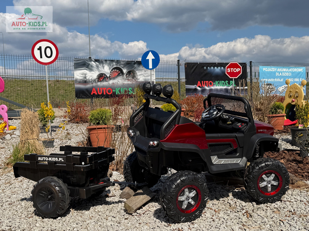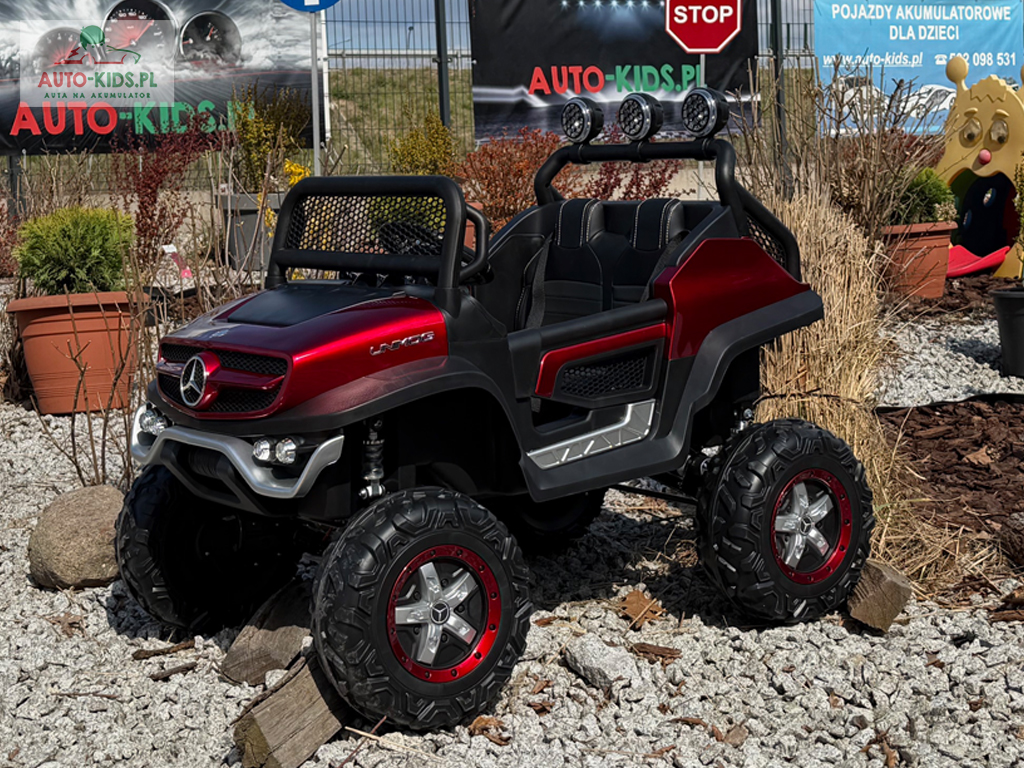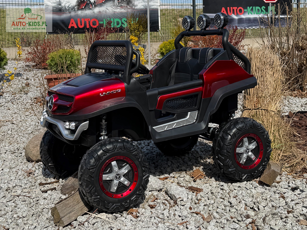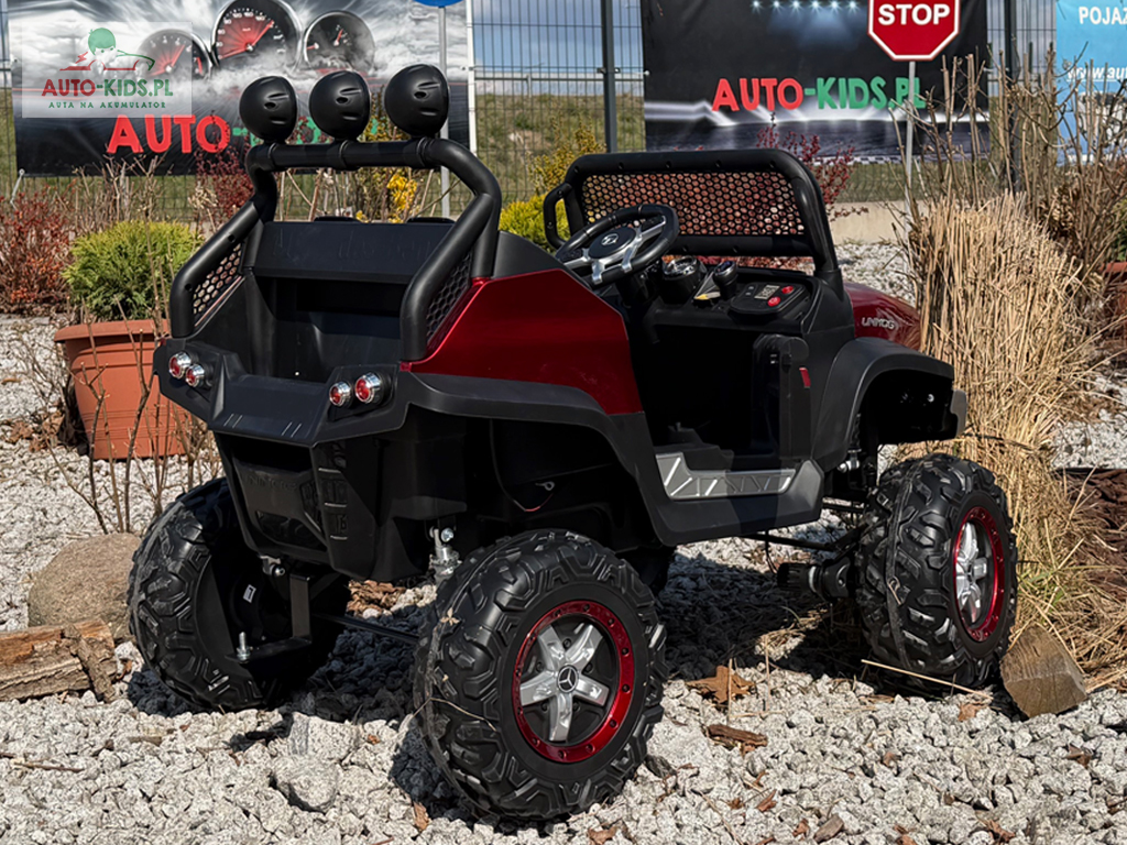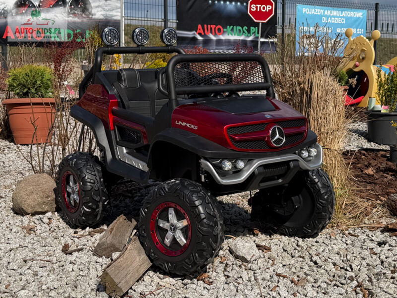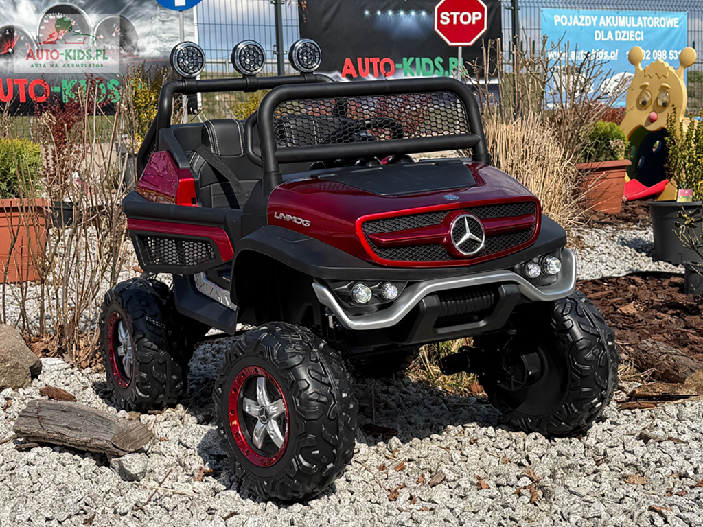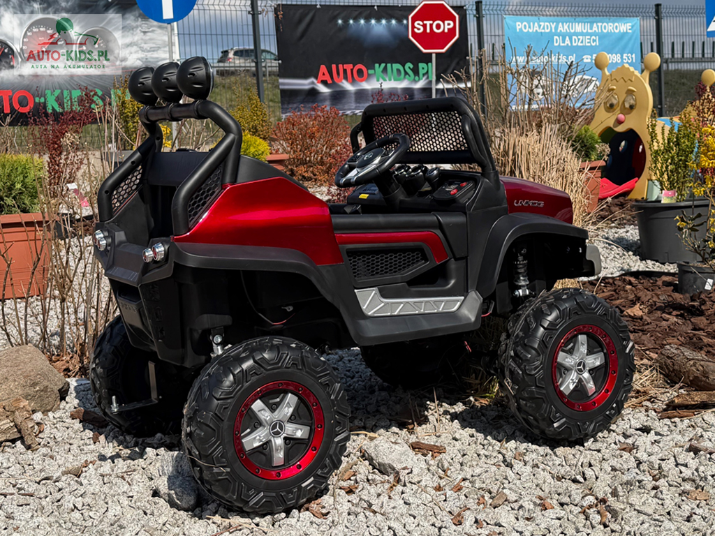 Pojazd Buggy Mercedes UNIMOG S z PRZYCZEPKĄ! 4×4 12V 14AH! BORDOWY LAKIEROWANY