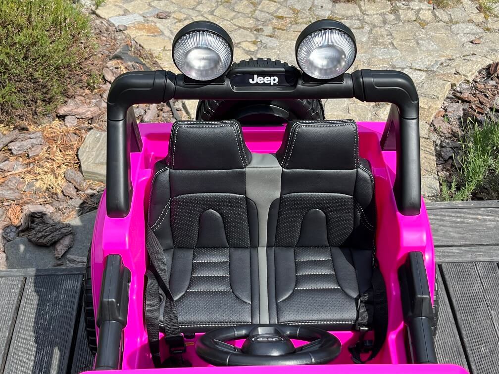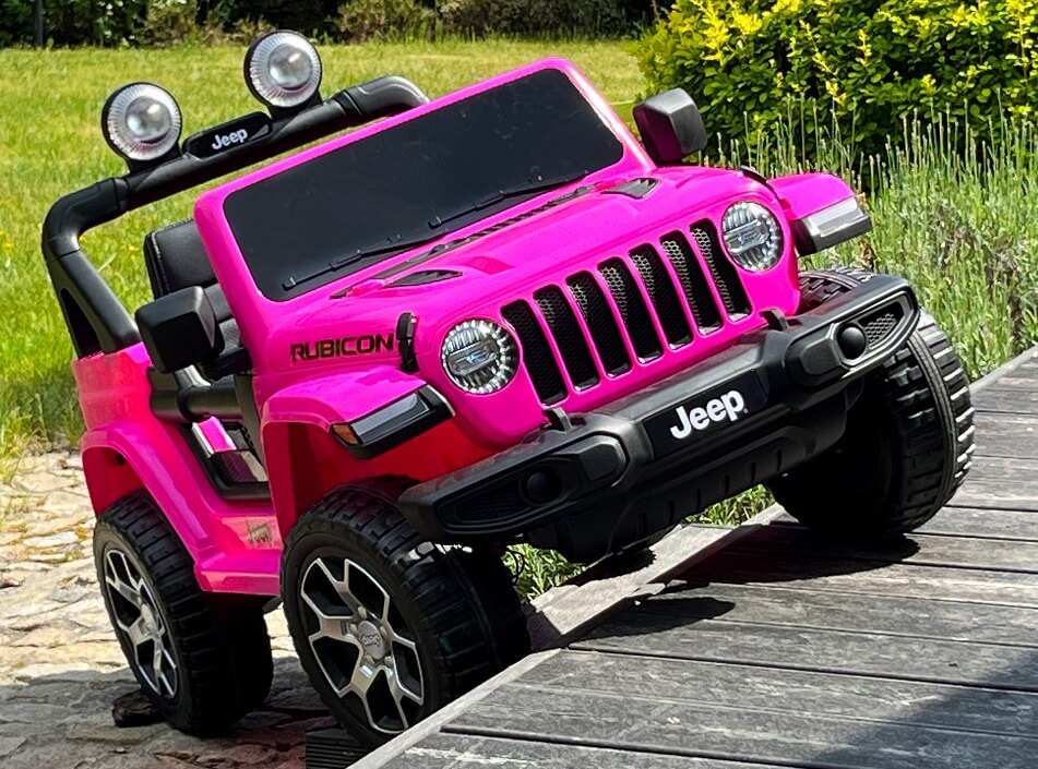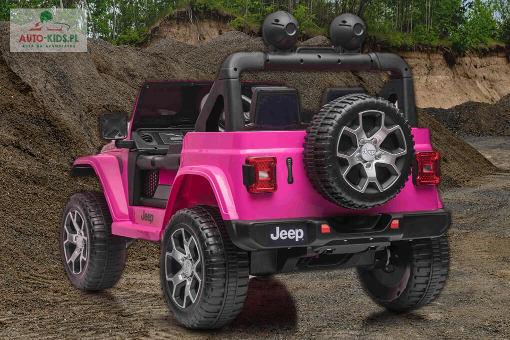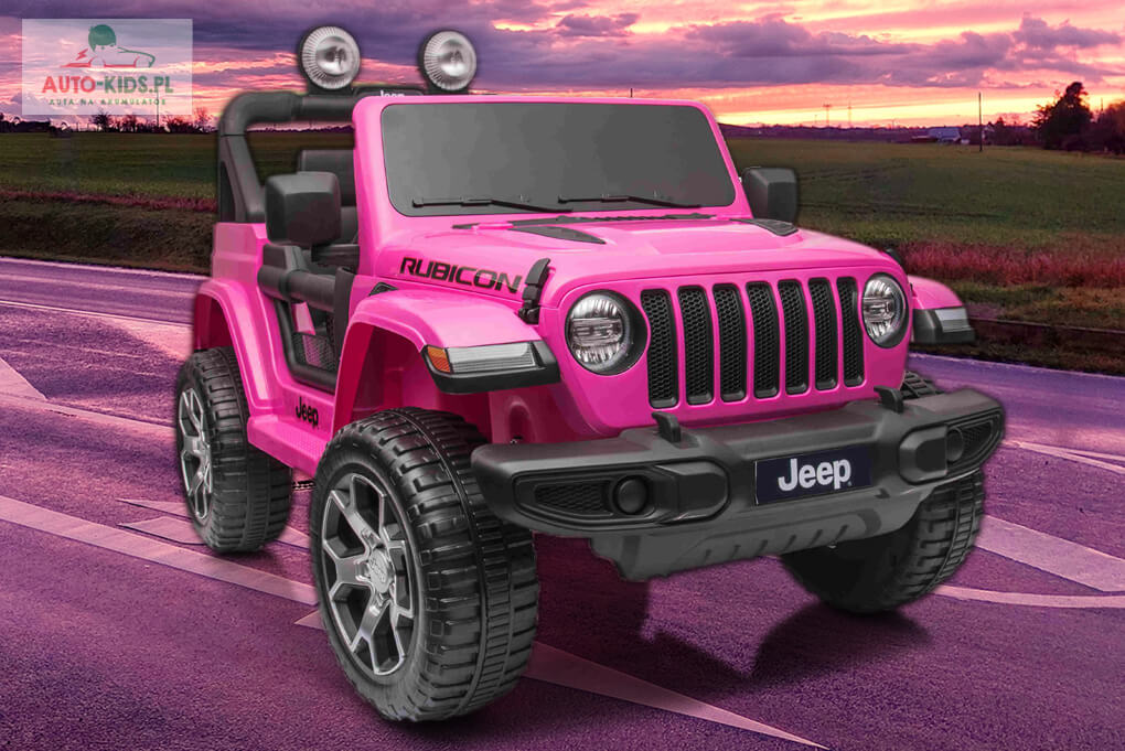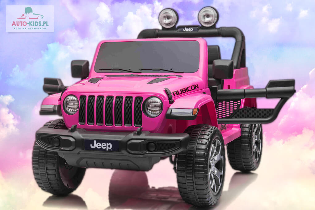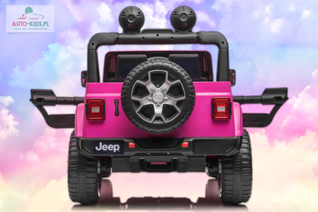 Terenowy Jeep Wrangler Rubicon o mocy 180W z mocną baterią 14Ah – w pięknym fuksjowym kolorze