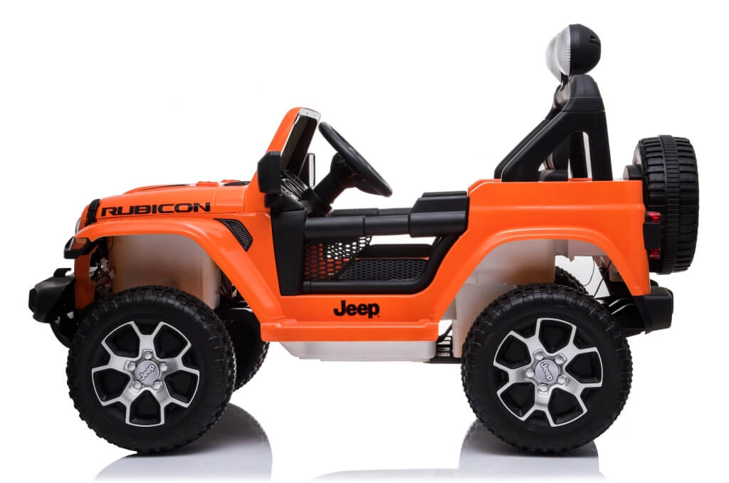 Terenowy Jeep Wrangler Rubicon z napędem 4x4 4x45W (180W) z powiększonym akumulatorem 12V 14Ah w najbogatszej wersji wyposażenia! Unikalny pomarańczowy kolor.