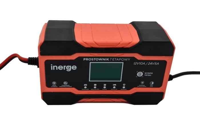 7-stopniowy tryb ładowania: → odsiarczanie → miękki start → ładowanie prądem stałym → stałe napięcie ładowania → test → regeneracja → ładowanie konserwacyjne Parametry techniczne: – napięcie zasilania: AC 110 – 220V (50/60 Hz) – napięcie wyjściowe: 12V/24V (auto) – prąd wyjściowy: DC 12V10A / 24V5A – moc: 180W (max.) – chłodzenie: wbudowany wentylator – certyfikat CE