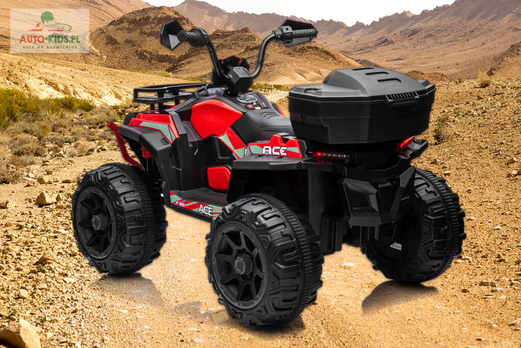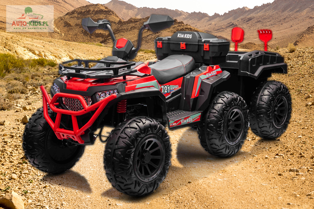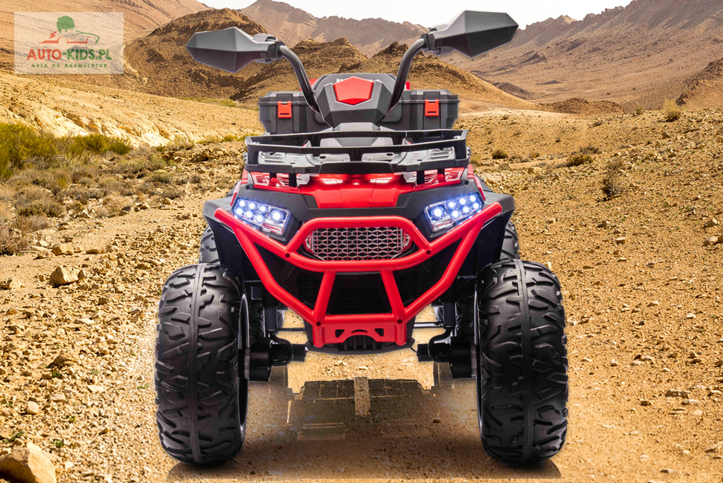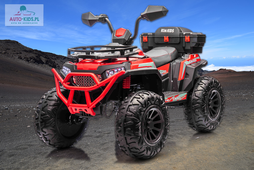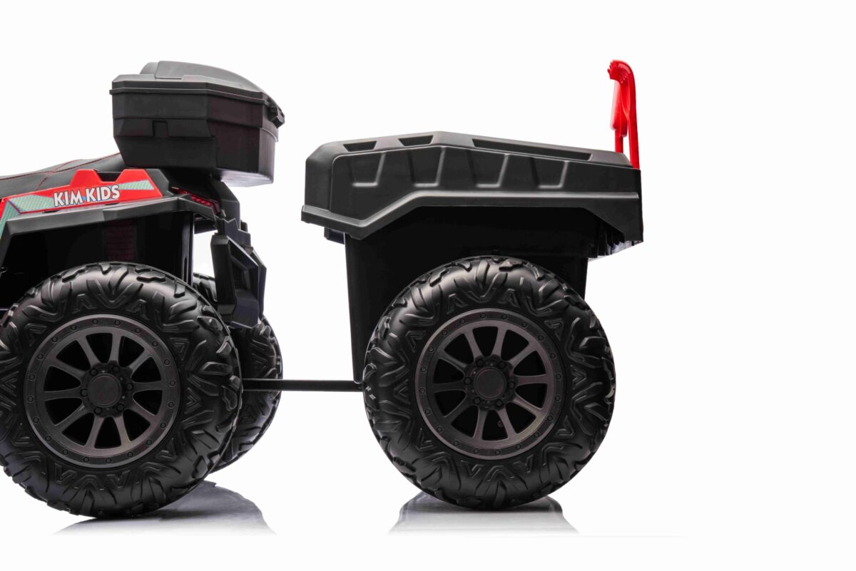 Quad Force Power ATV 900, idealny do kontynuowania przygody z quadami, najnowszy model z dużym otwieranym kufrem i pilotem dla rodzica. 4 mocne silniki 4x150W oraz powiększony podwójny akumulatory 2x12V9Ah (instalacja 24V/9Ah). Wersja z przyczepką.