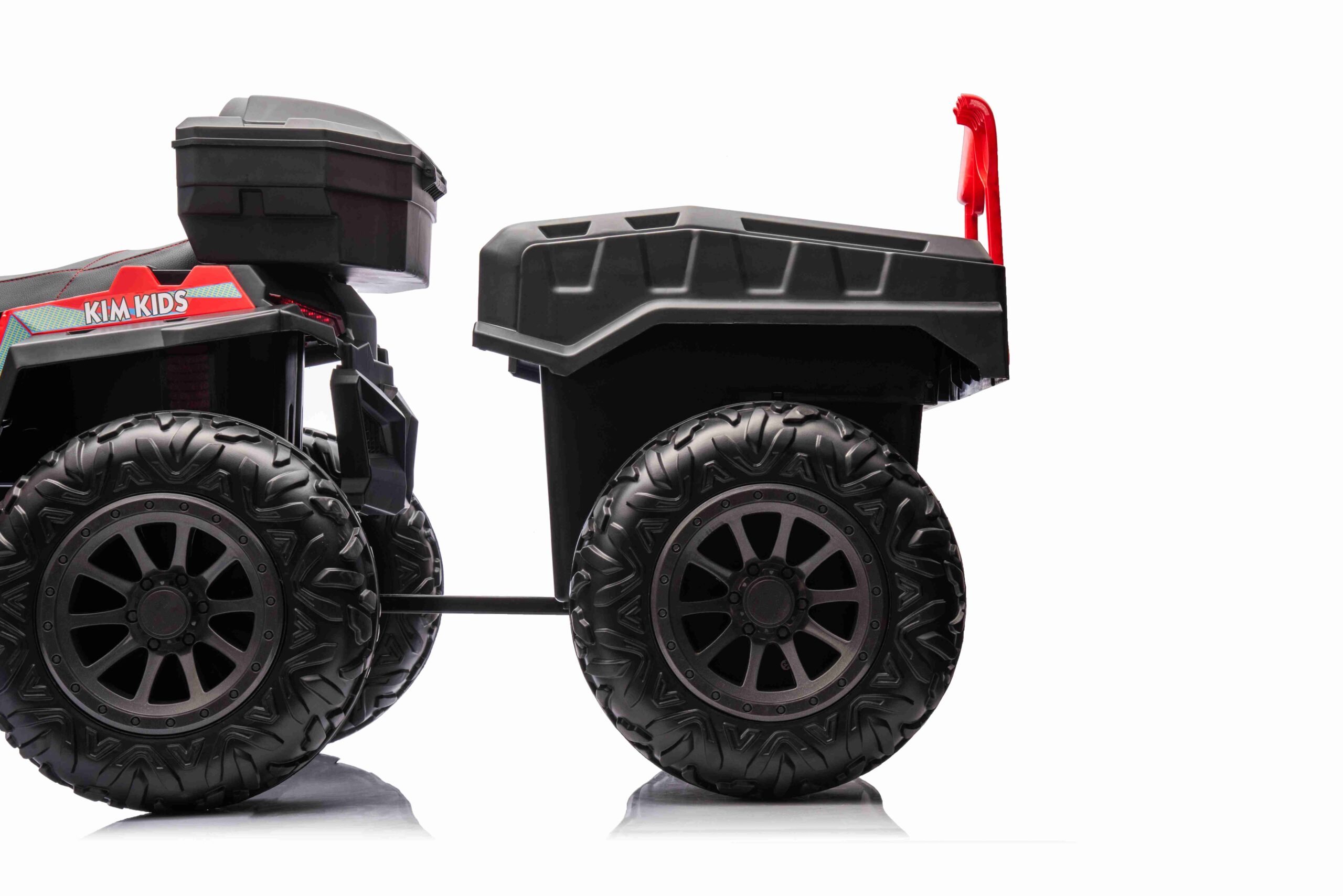 W skład zestawu wchodzi Quad Force Power w czerwonym kolorze z przyczepką z dodatkowym, składanym siedzeniem! Przyczepka jest w kolorze czarnym.