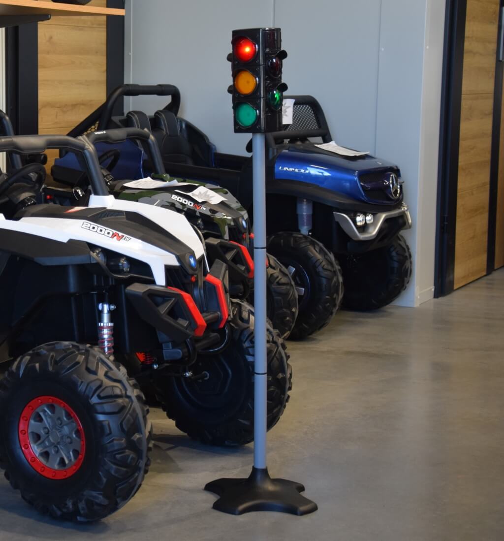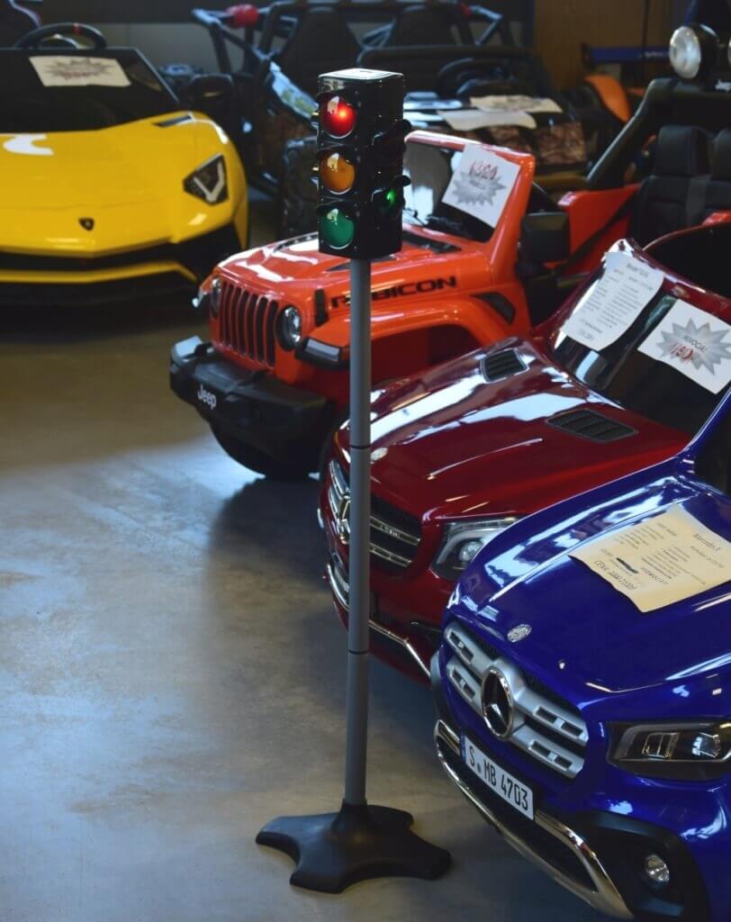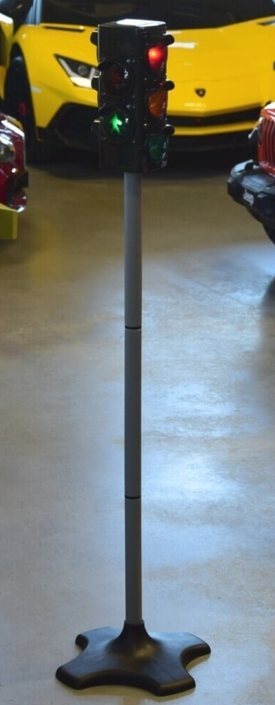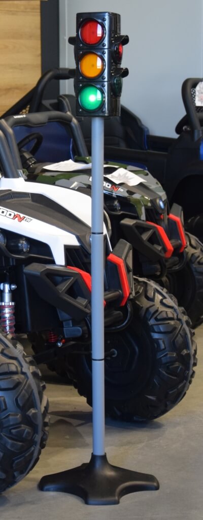 Sygnalizator świetlny z prawdziwymi zmieniającymi się światłami – w wersji dla dzieci. Wspaniałe uzupełnienie jazdy samochodem na akumulator i edukacja dla dzieci jednocześnie!