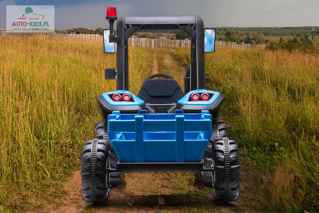 Bogate wyposażenie ze skórzanym fotelem, panelem multimedialnym (USB + Bluetooth) i piankowymi kołami EVA to gwarancja udanego prezentu dla twojej pociechy i wiele godzin niezapomnianej zabawy młodego farmera! W zestawie również szybka ładowarka 24V!